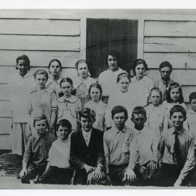 Fraleigh School District, #5. Original owned by E. Fraleigh. Students listed on back of picture.