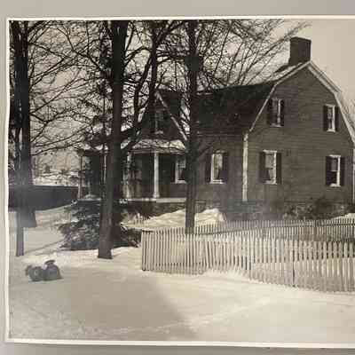 Written on another enlargement: Was David Van Ness House in the early days. Was an Inn and post office. You can see the church sheds in the background as well as cemetery hill"