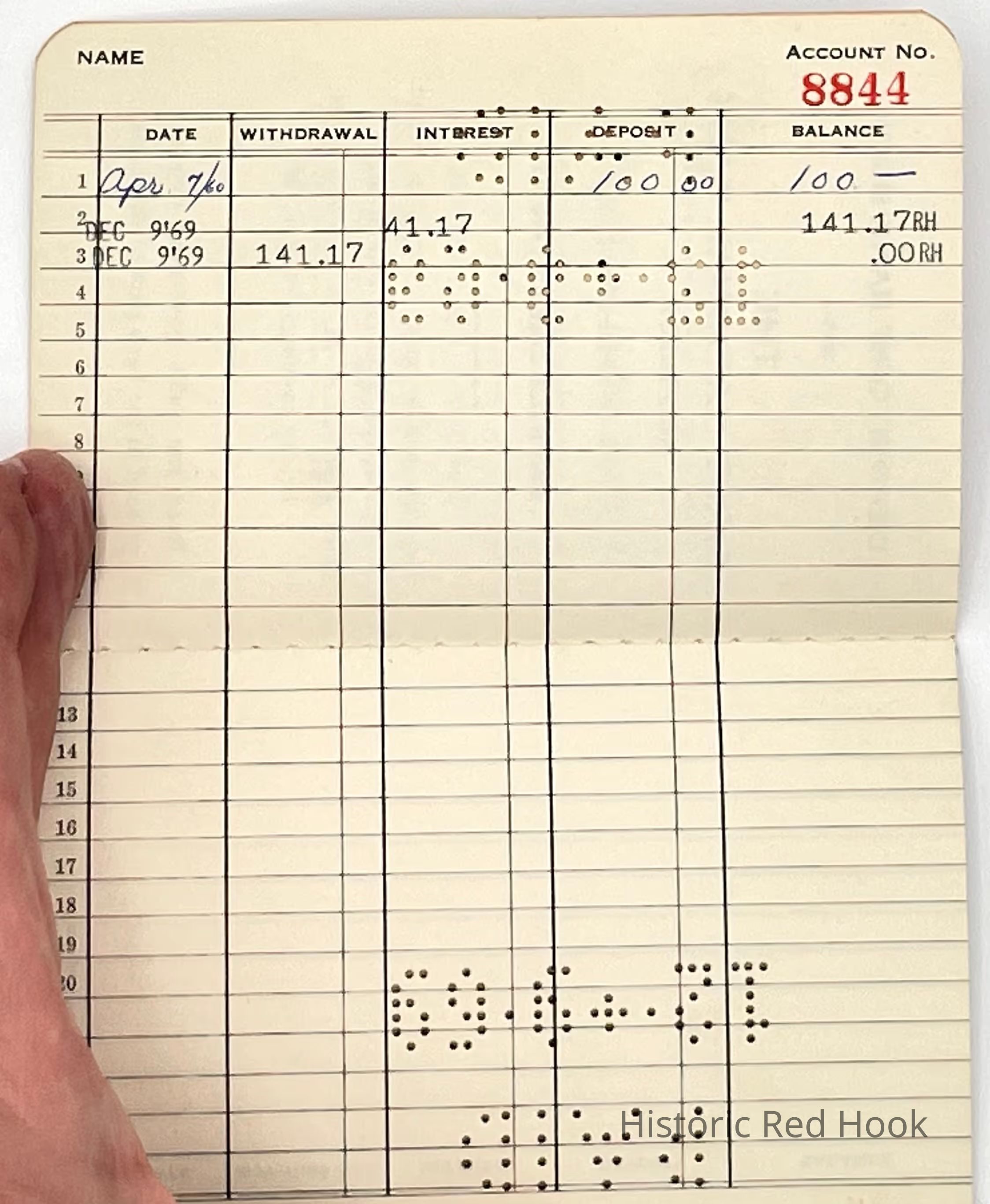 Deposited $100 in 1960. Closed account in 1969 with $41.17 in interest.Collection