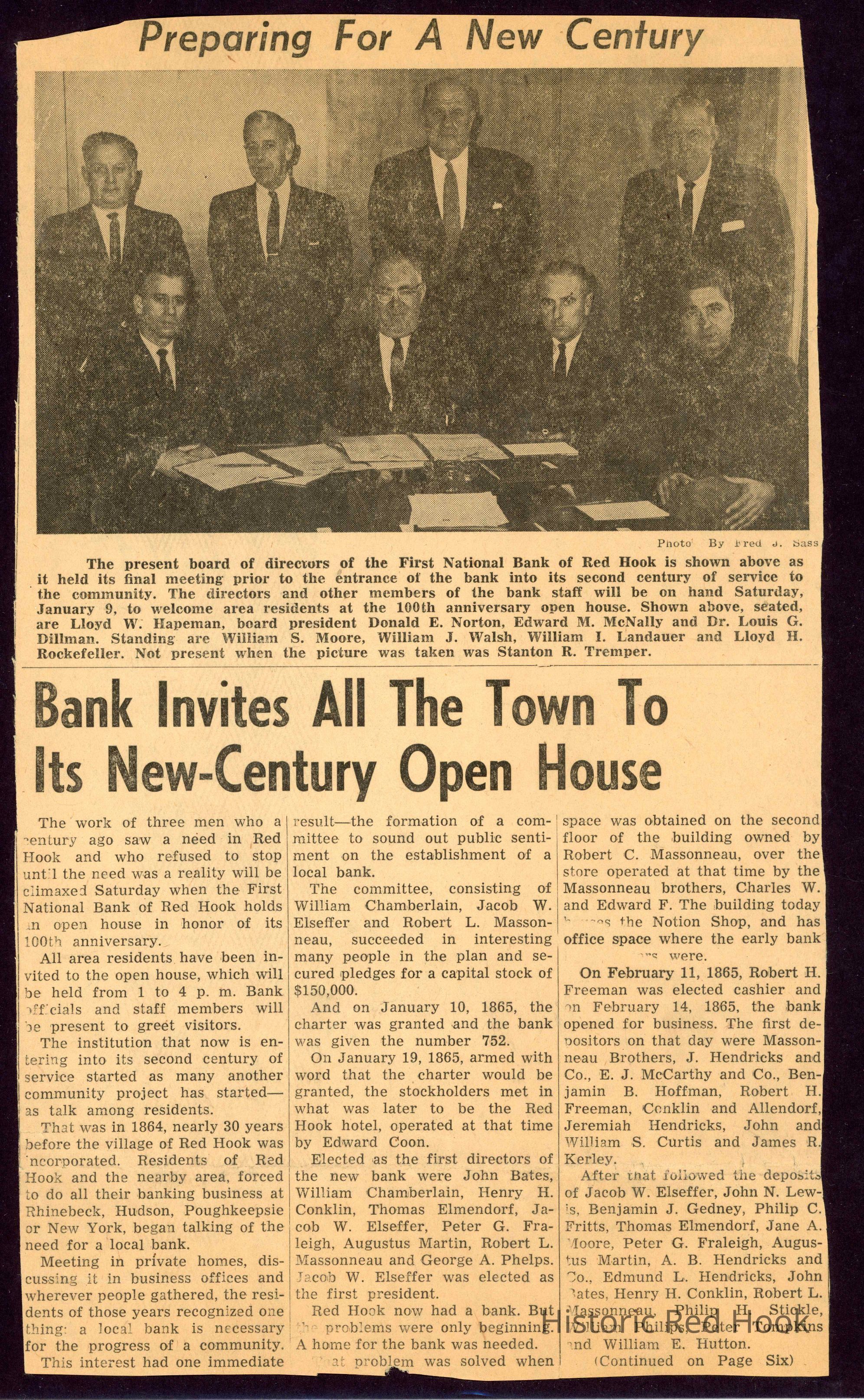 Bank Open House clipping with Bank HistoryEntry/Object ID
