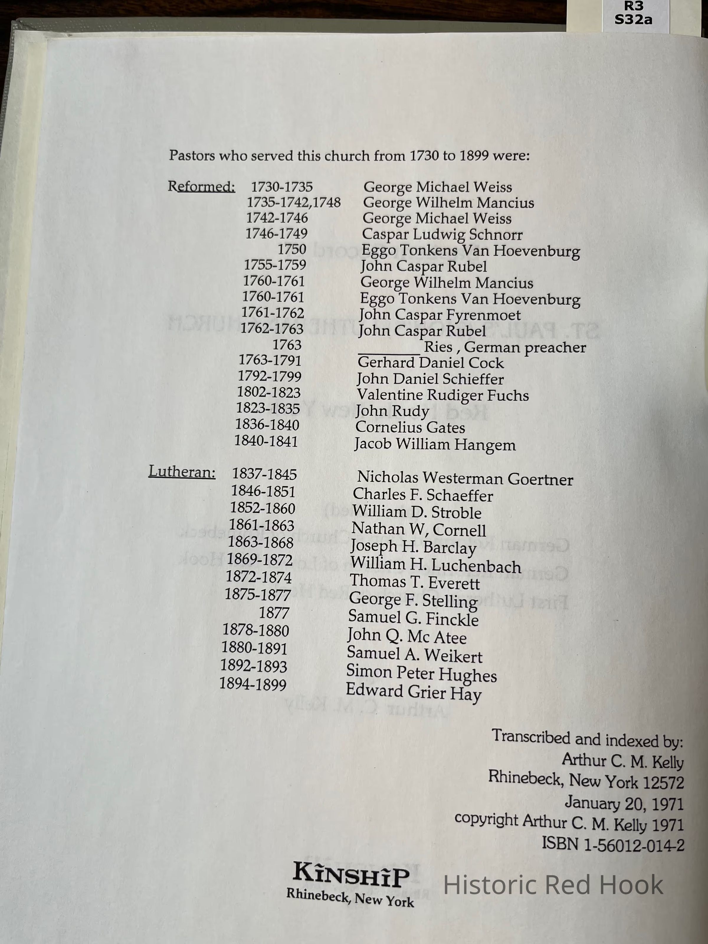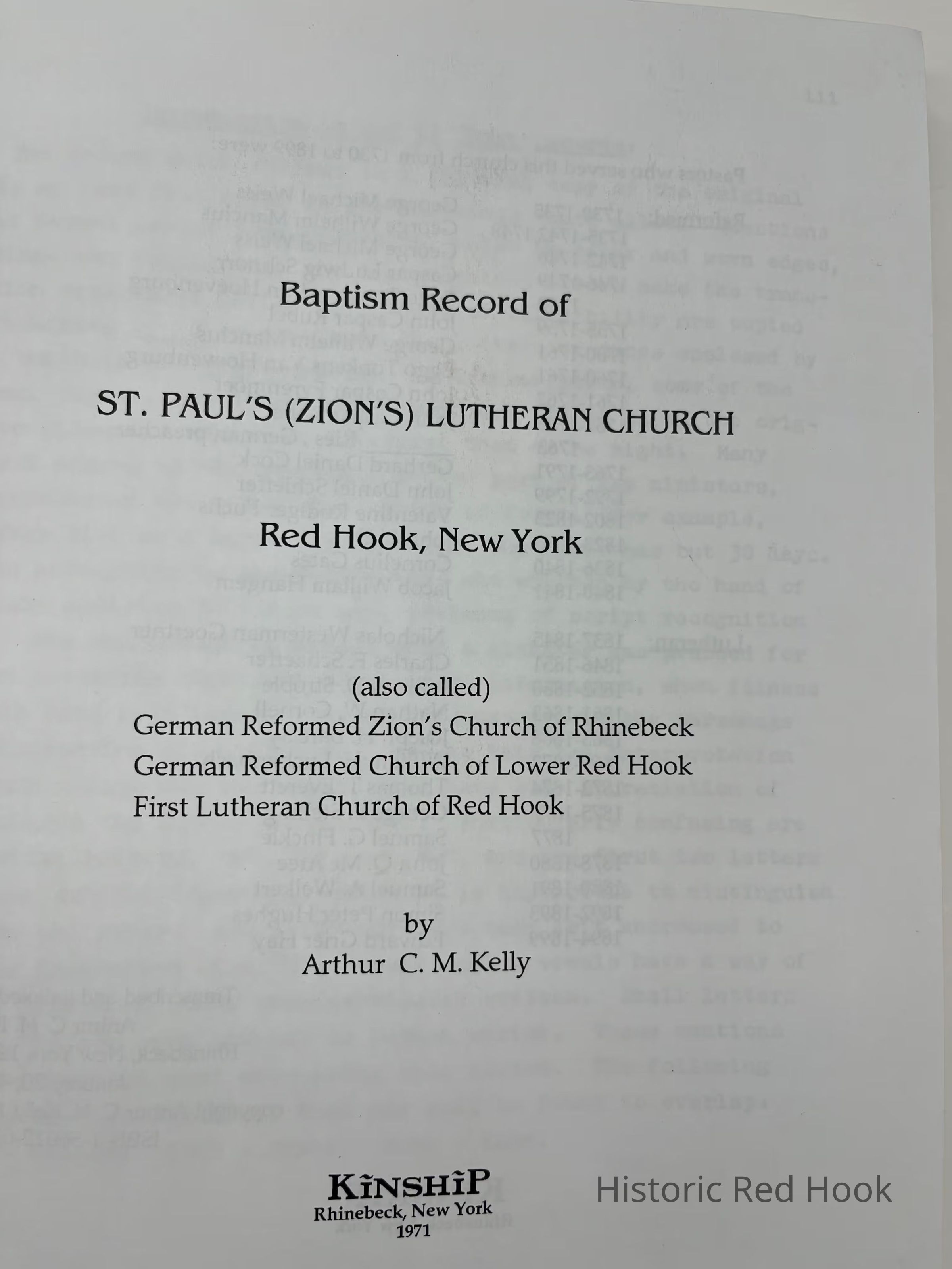 Baptism record of St. Paul's (Zion's) Lutheran Church, Red Hook, N.Y. 1730-1904Entry/Object ID