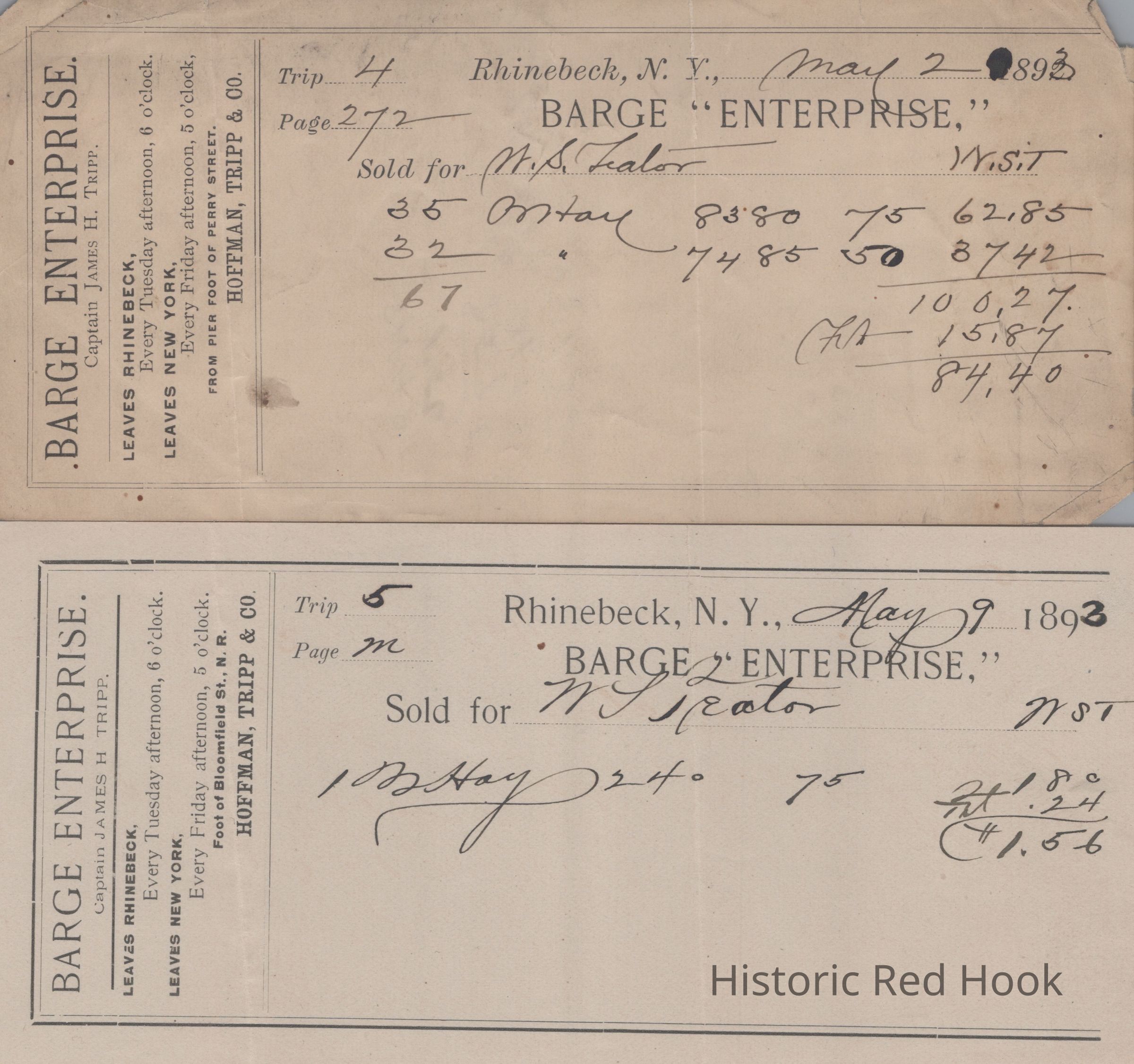 Two receipts from Barge Enterprise addressed to W. S. Teator dated May 2 and 9, 1893.Relationships