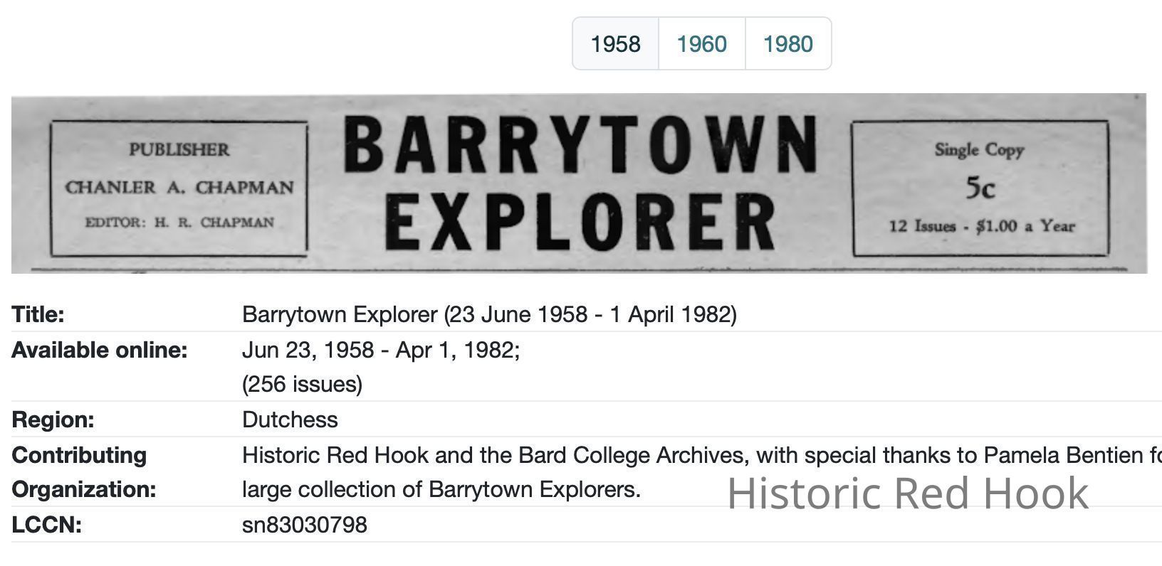 Barrytown Explorer (1958-1982), We have physical copies. Online access is through HRVH (linked below)Publication Details