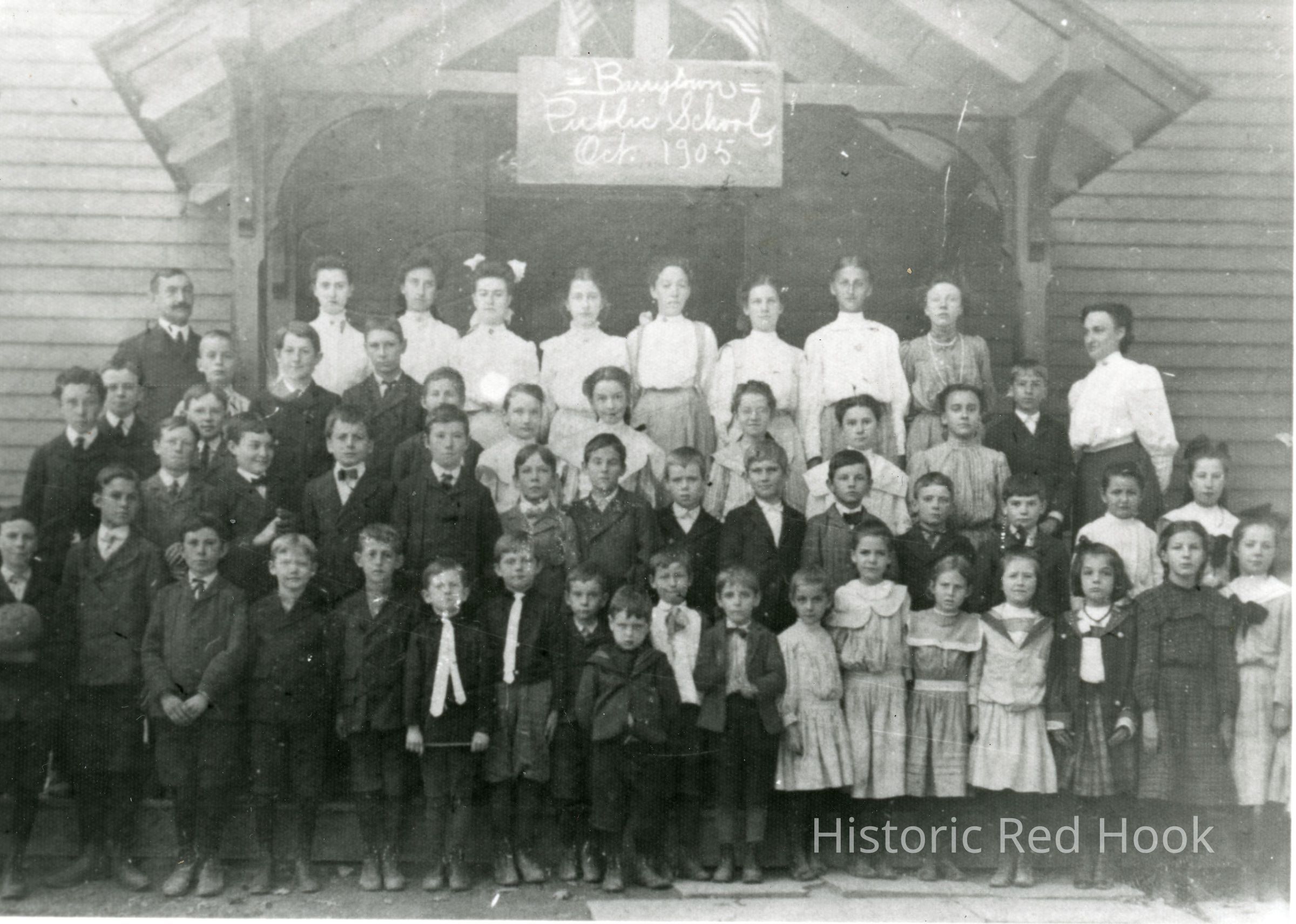 Sign over the students says "Barrytown Public School, Oct. 1905"Photograph Details