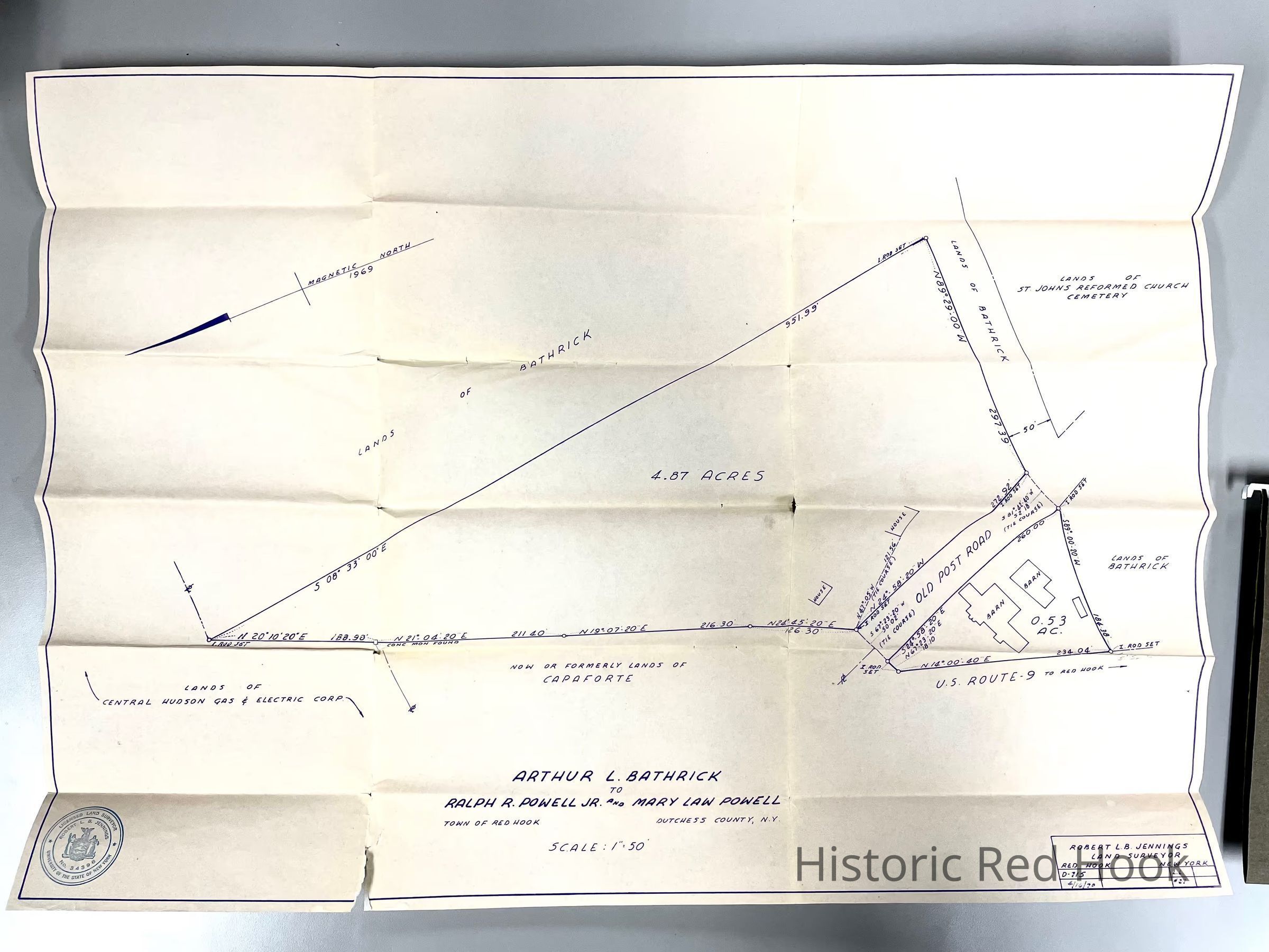 Land survey, Arthur L. Bathrick to Ralph R. Powell and Mary Law Powell, Robert L.B. Jennings, surveyor, scale " = 50'.Collection