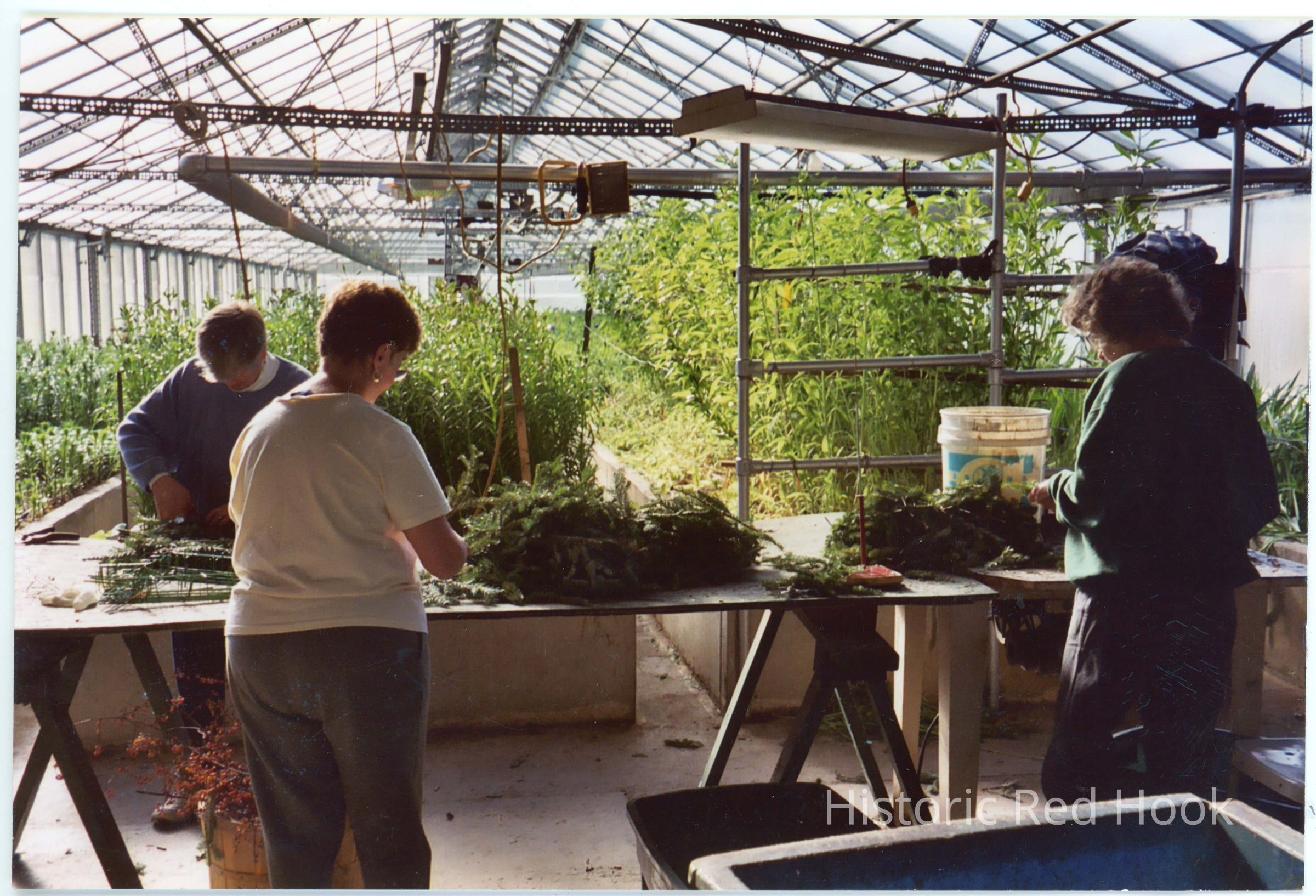 Color photo of Battenfeld employees making wreaths.Photograph Details