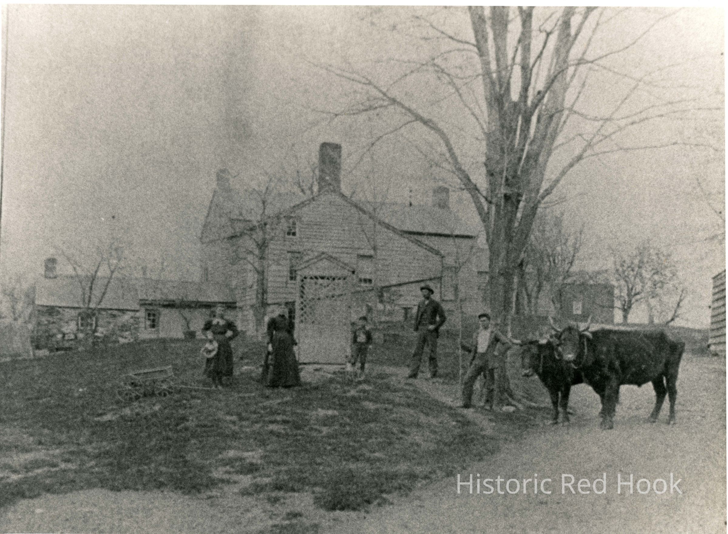 Philip Fraleigh House (now Chris Gilbert residence, formerly residence of Marsha and Tim Gilbert) with two women, two men and a boy and two oxen.Photograph Details
