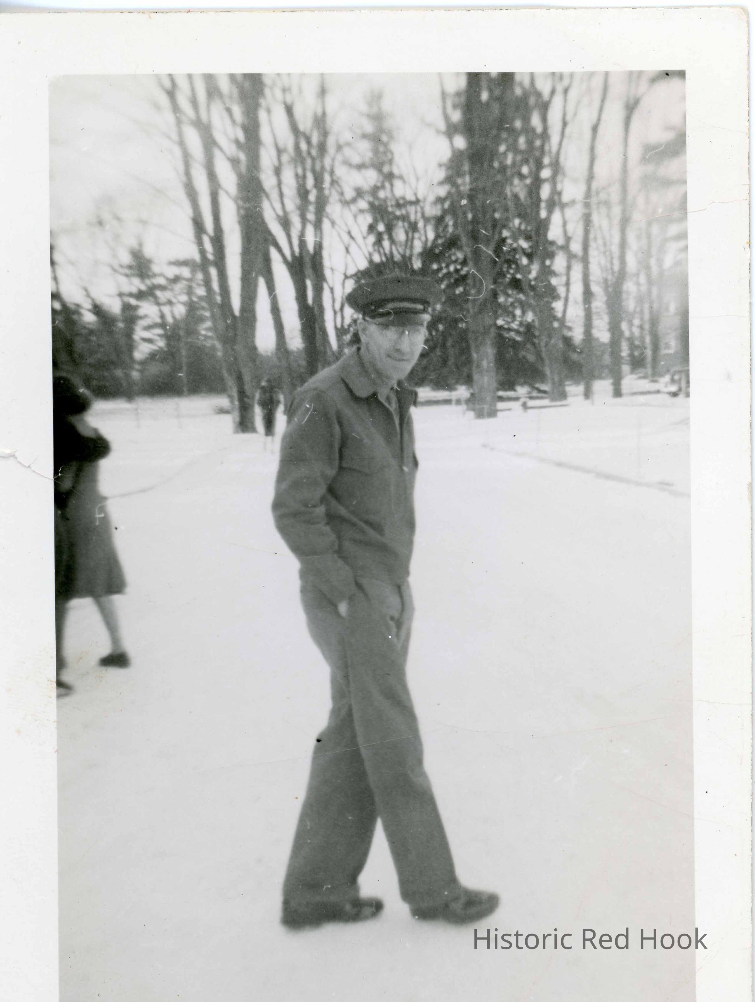 Photo of man walking in snow, labelled 'Benny Feller'Photograph Details