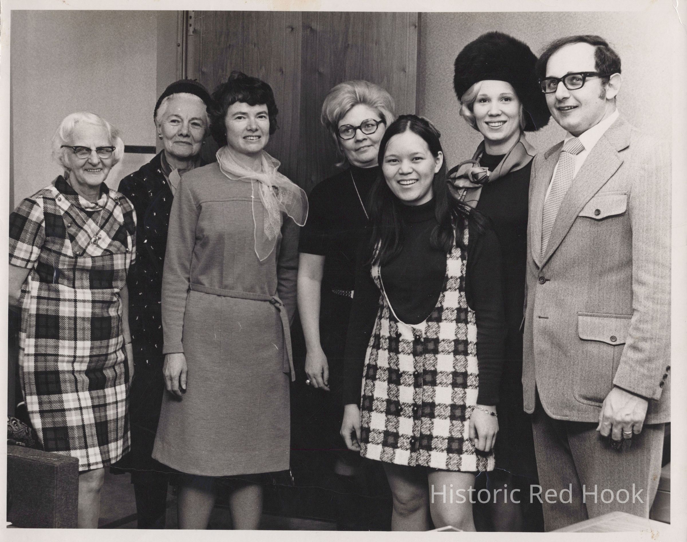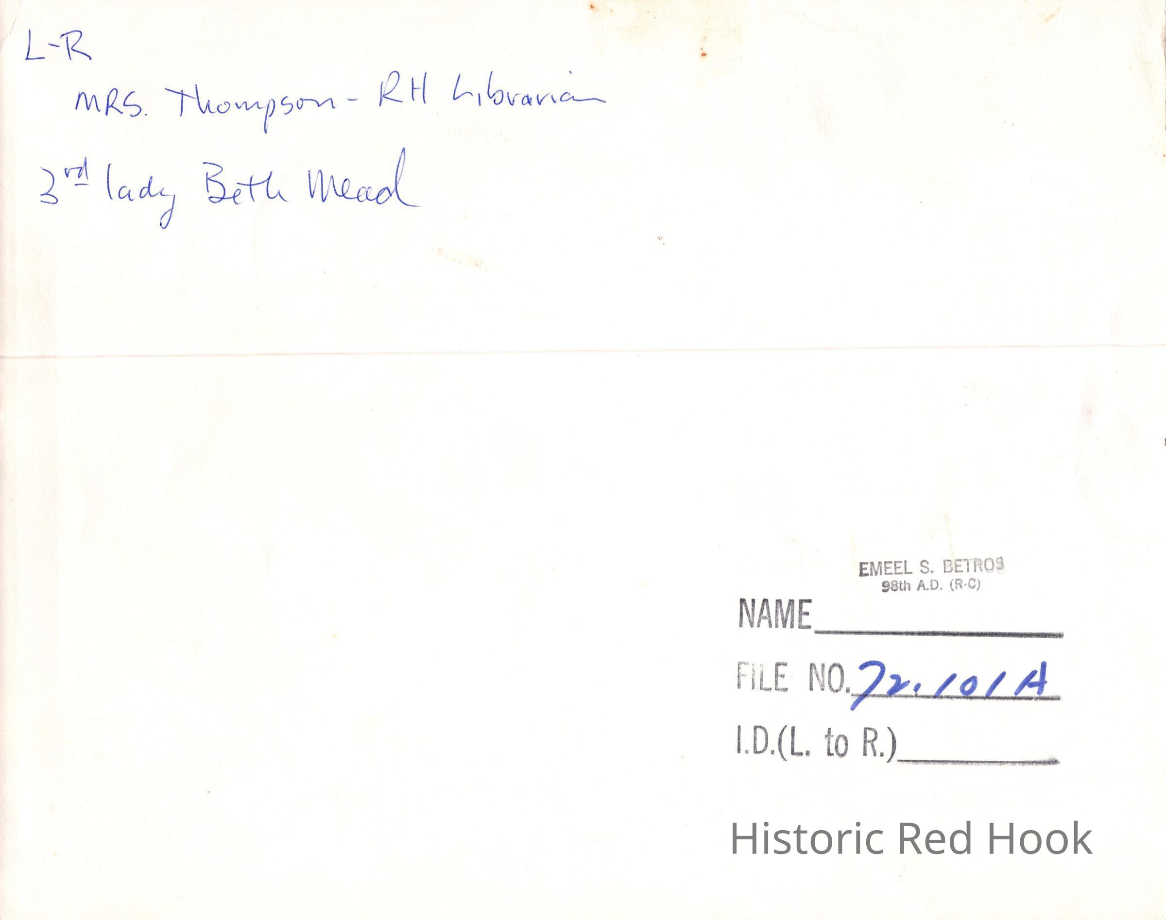 Beth Mead (third from left) with a group of women. Woman on the left identified as Mrs. Thompson, Red Hook Librarian. Far right, Emeel Betros, Assemblyman.