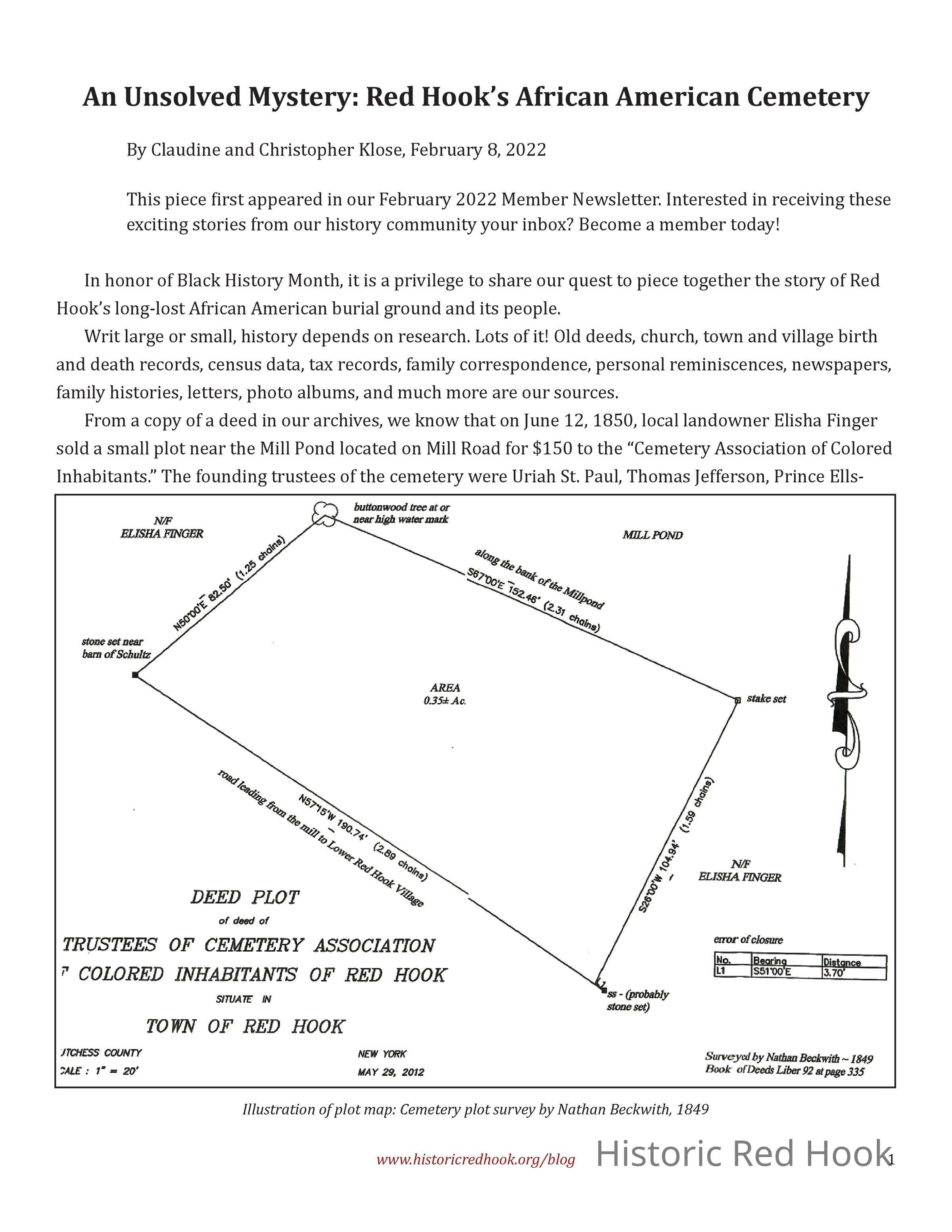 Blog post titled An Unsolved Mystery: Red Hook’s African American Cemetery