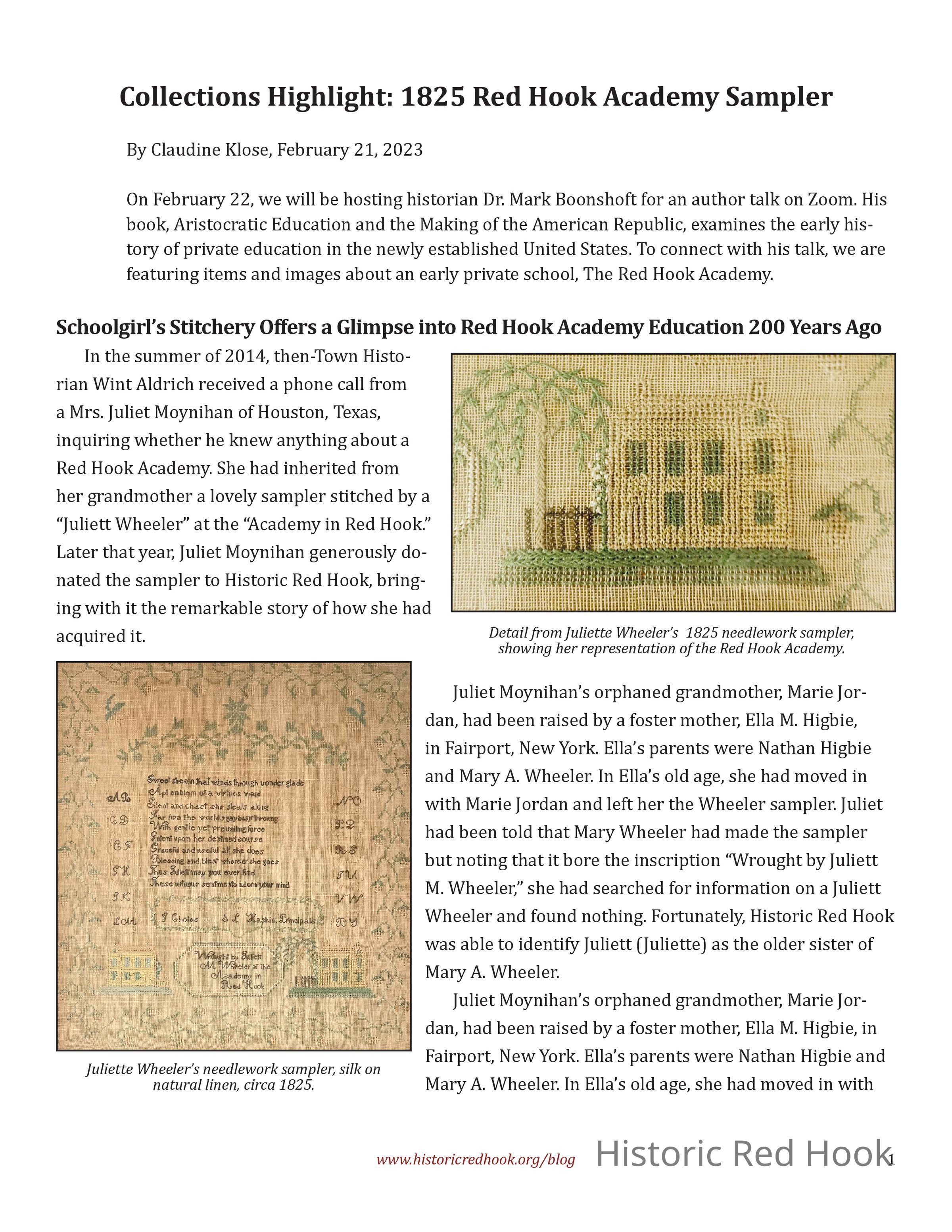 Blog post titled Collections Highlight: 1825 Red Hook Academy SamplerPublication Details