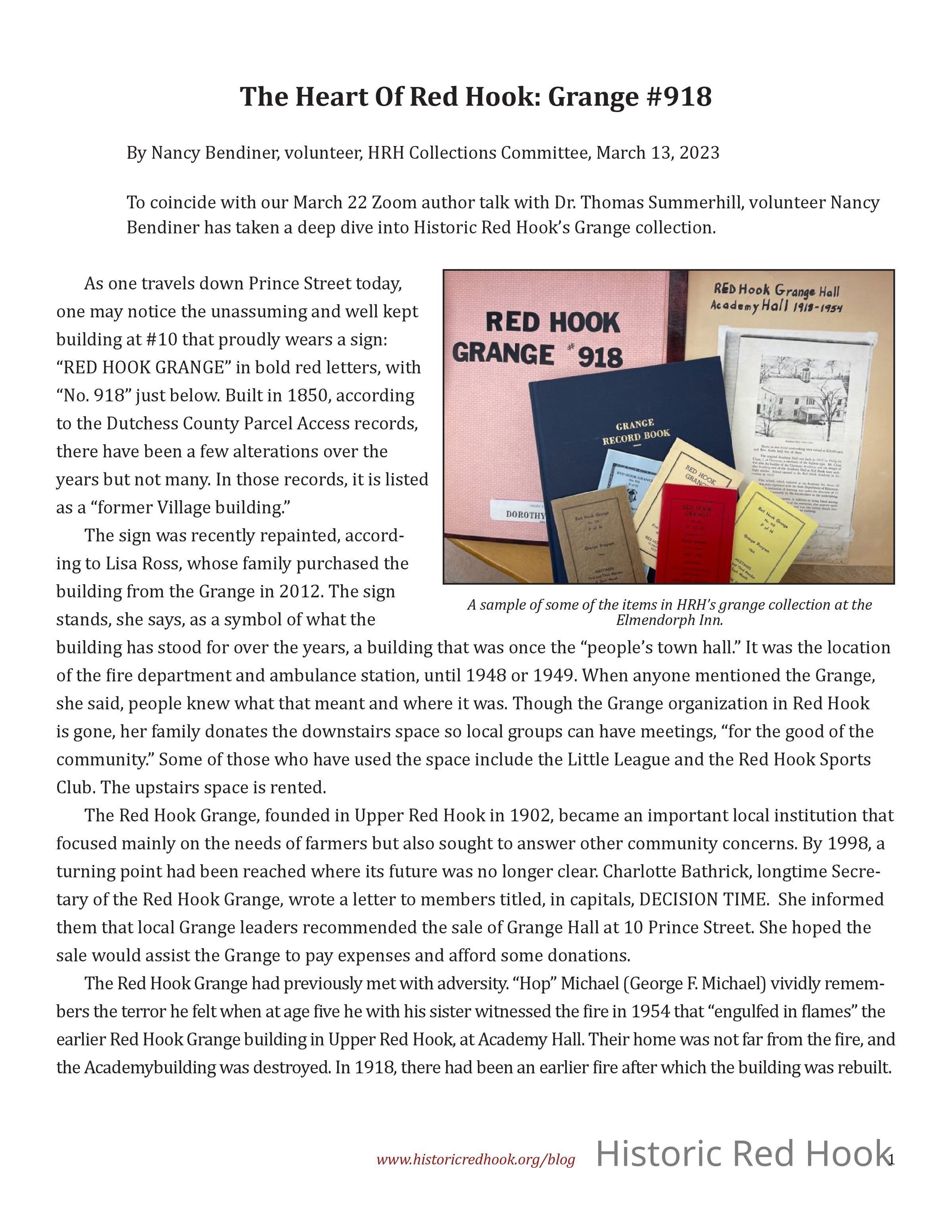 Blog post titled The Heart Of Red Hook: Grange #918Publication Details