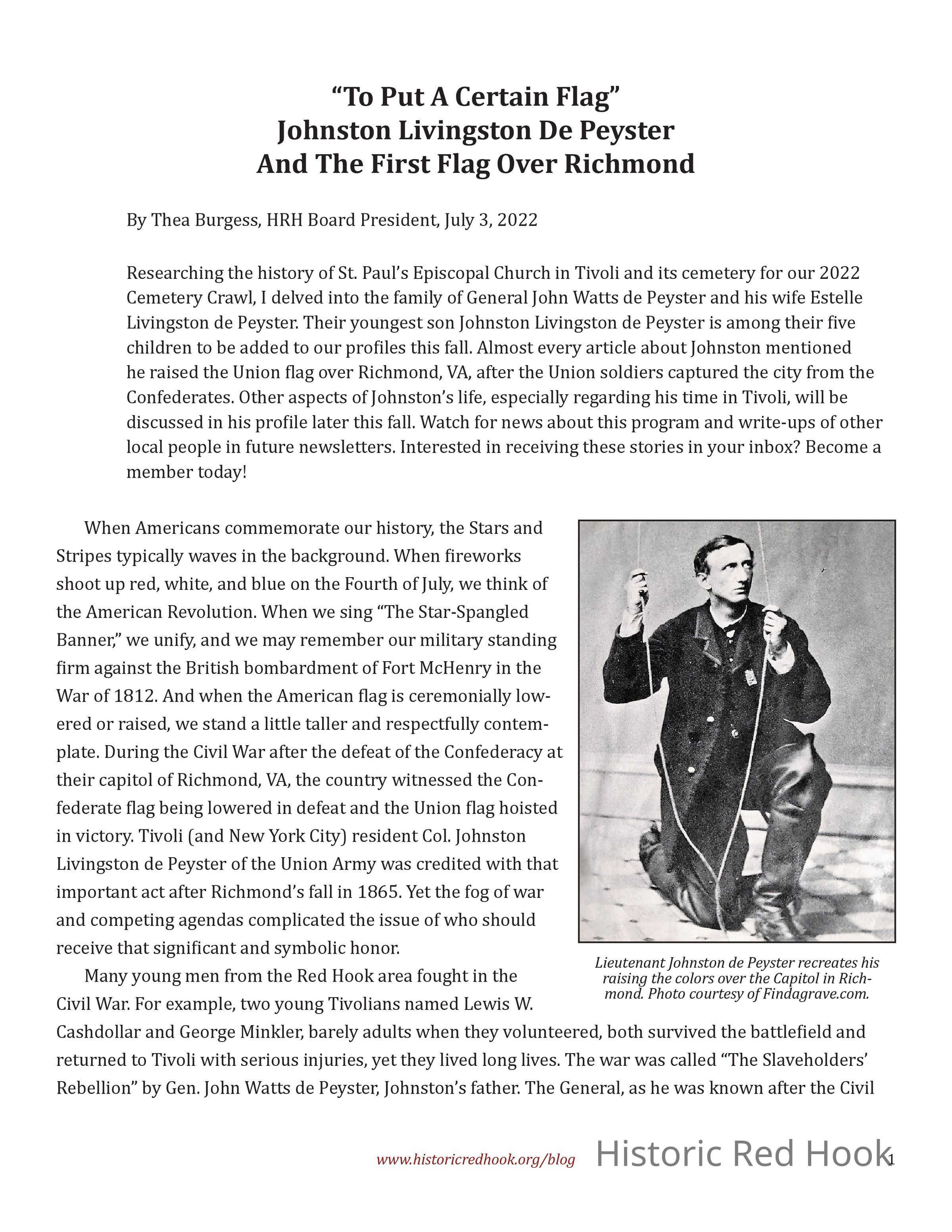Blog post titled “To Put A Certain Flag” Johnston Livingston De Peyster And The First Flag Over RichmondPublication Details