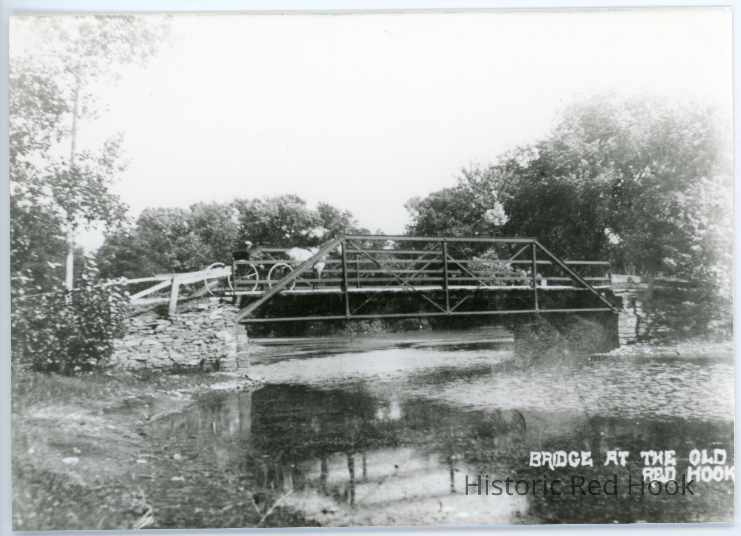 Bridge at Fraleigh Mill, Linden Avenue Extended, Red Hook. Horse and buggy crossing metal bridge over the Sawkill.
