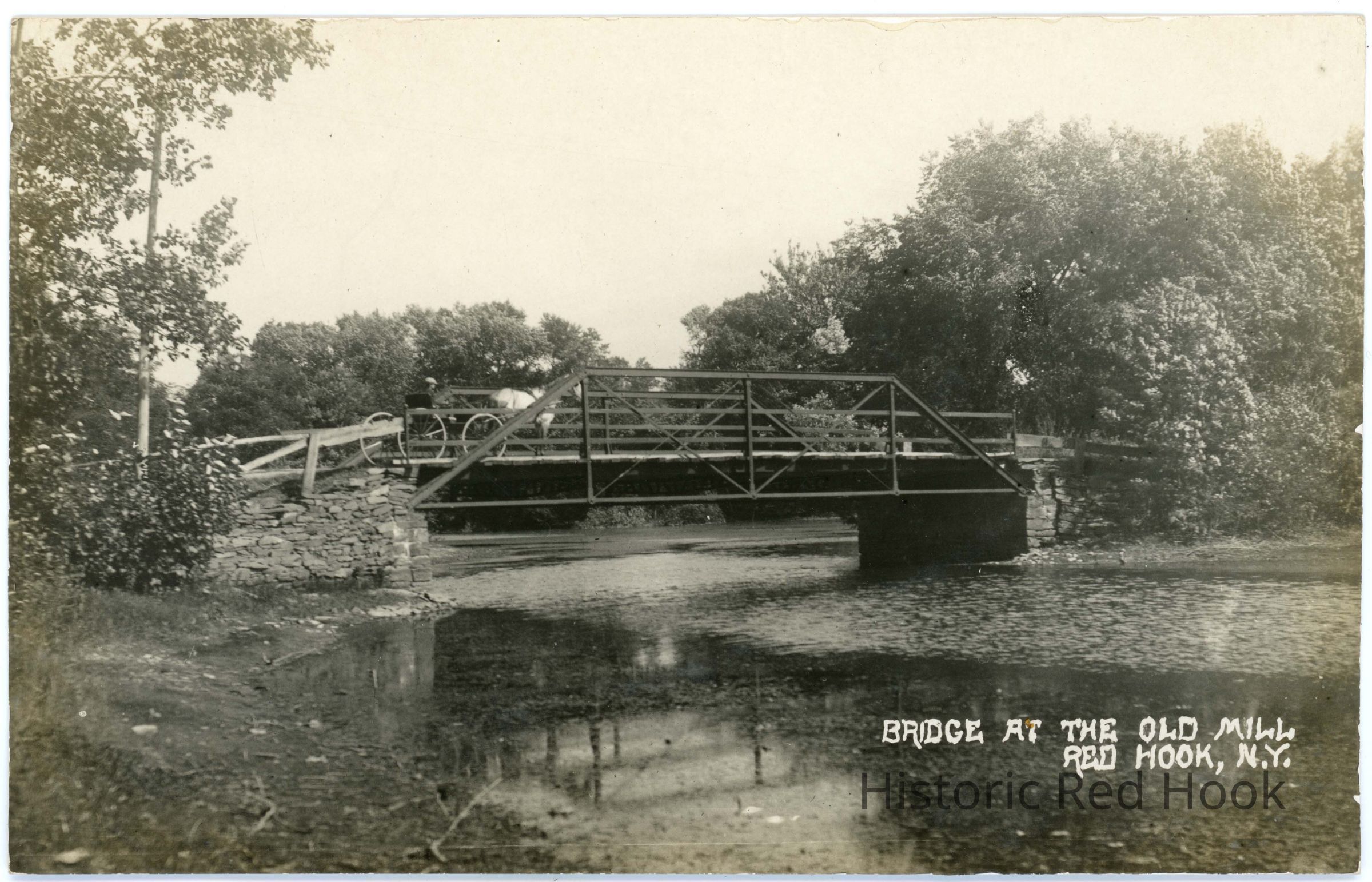 Bridge at the Old Mill, Red Hook, N.Y. Horse and wagon crossing bridge over Mill Pond.Subject Place