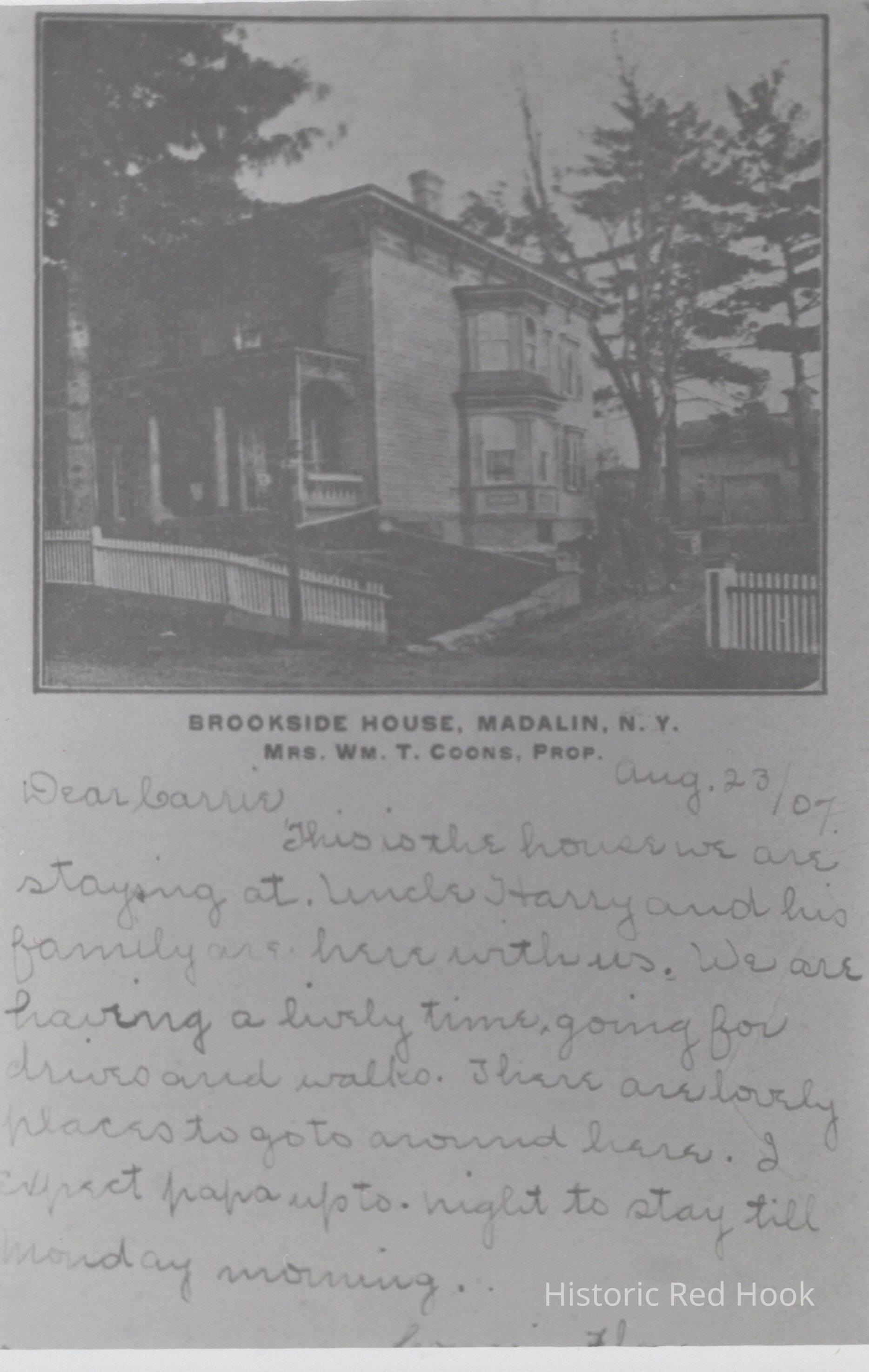 Photocopy of Postcard from Brookside House August 23 1907Subject Person/Organization