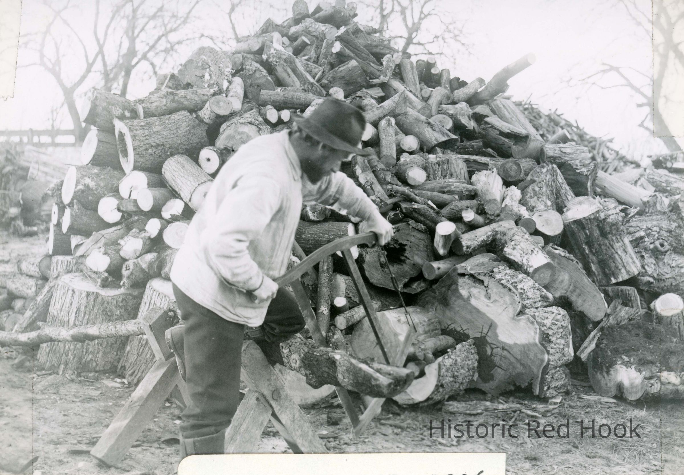 Man 'bucking' wood, 1906