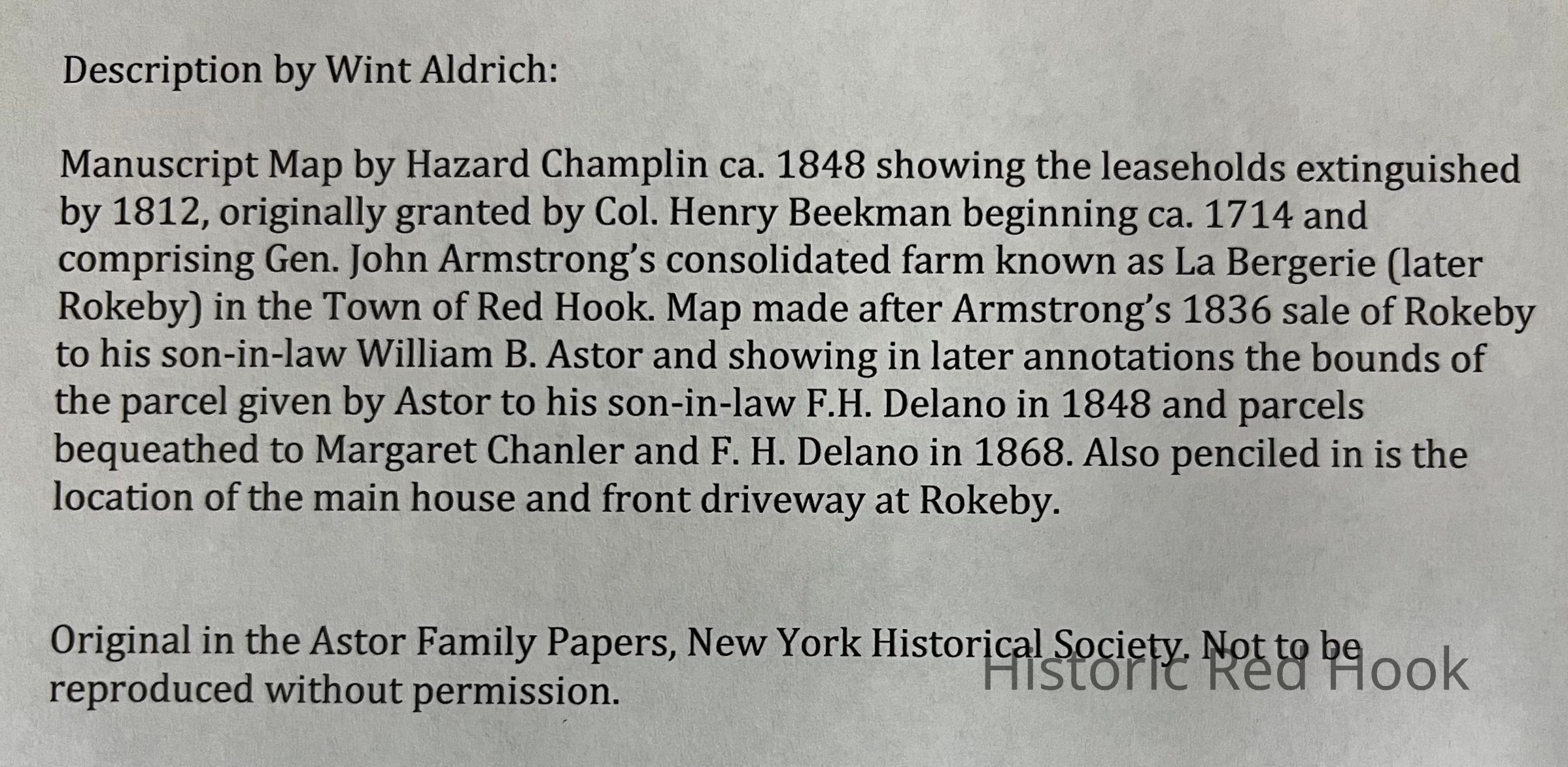 c 1848 Champlin Map of leaseholds that later became RokebyEntry/Object ID