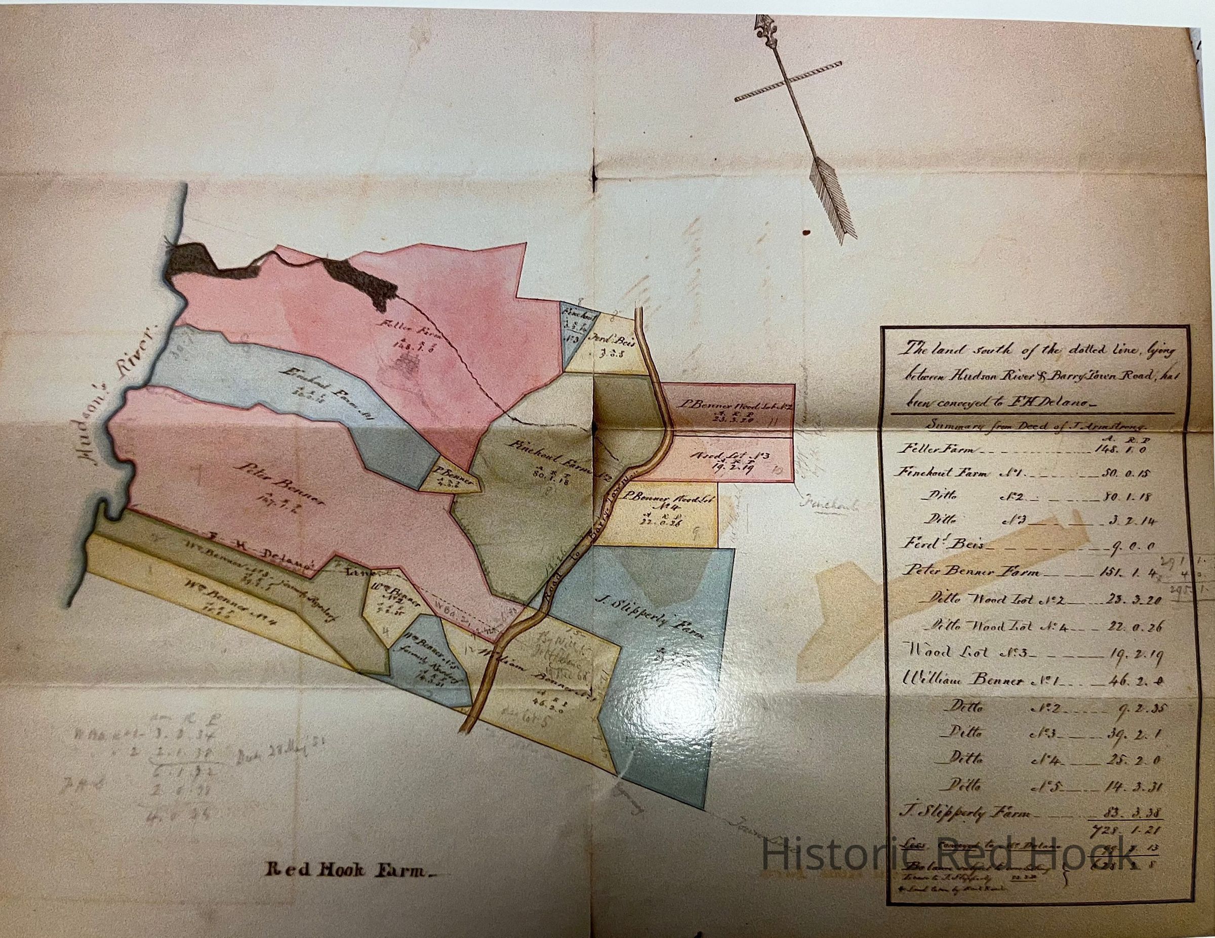 A color print of a c 1848 map by Hazard Champlin of leaseholds extinguished by 1812 that later became Rokeby -