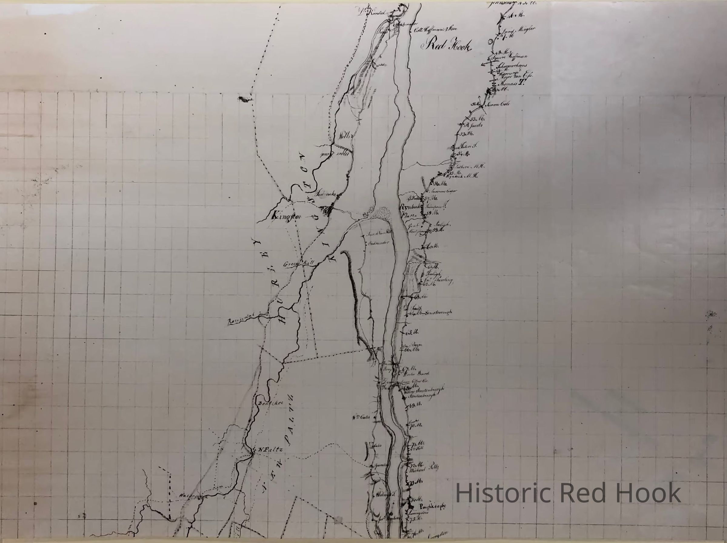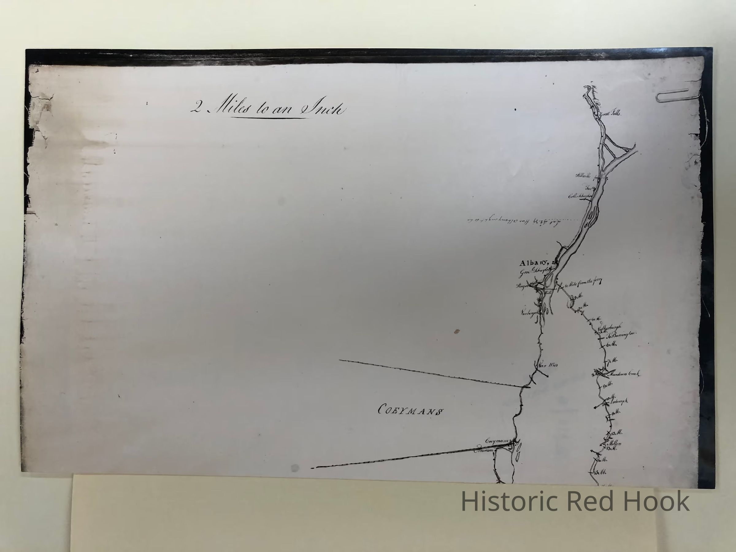 Photostats of Post Road from Poughkeepsie to Albany in 3 parts featuring the Mile Markers. Map # 349, NYS Library. 'Col. Hoffman's Store" and "Red Hook" marked.Collection