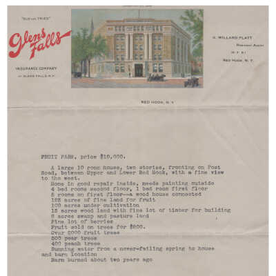 Farms for sale - letters from G. Willard Platt to G. Gordon MeadEntry/Object ID