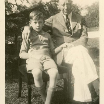 Formal photographic portrait of Claude Potts and his godfather, Valentine Hall, 1932