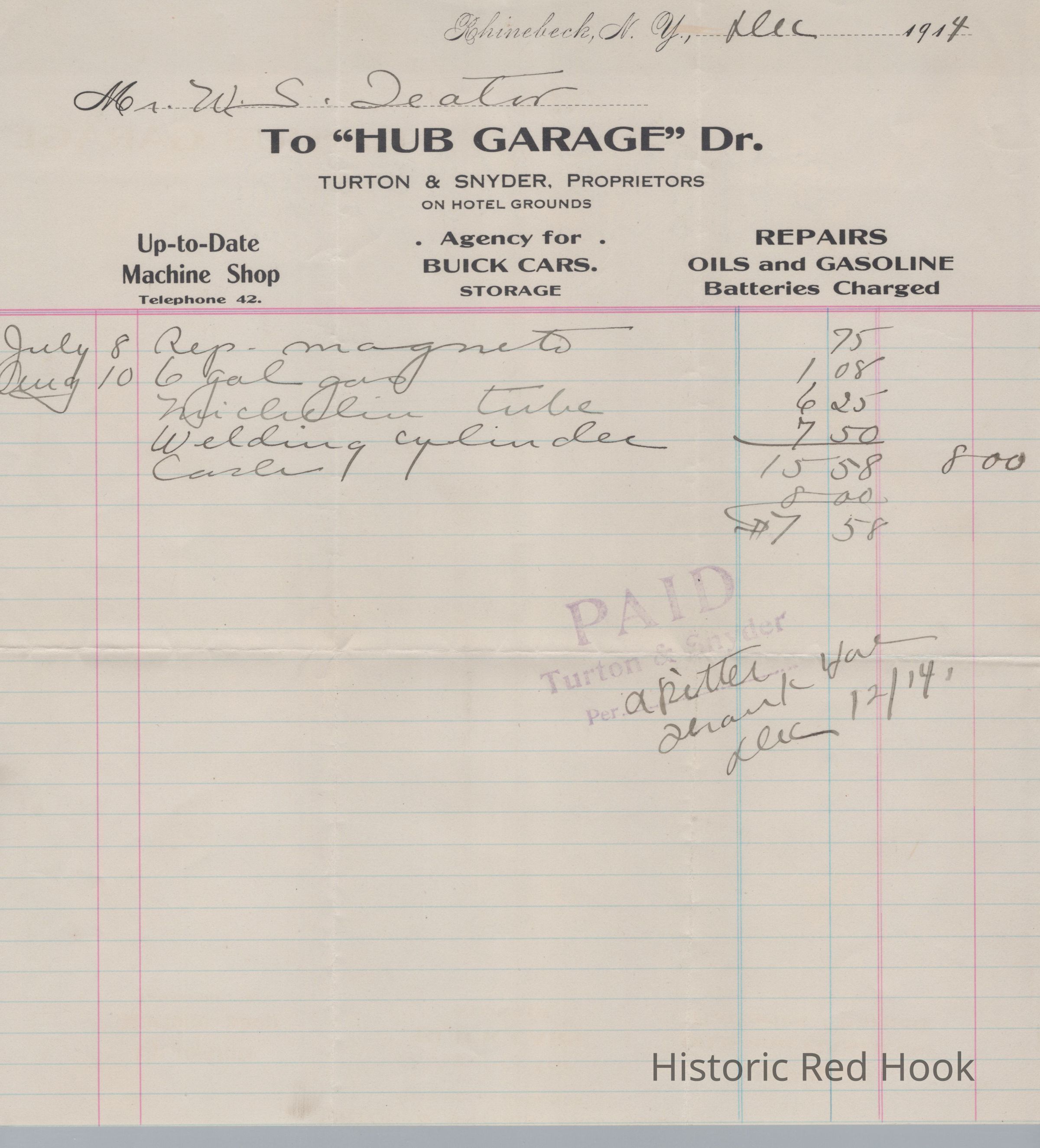 Invoice from To "Hub Garage", Turton & Snyder, "Agency for Buick Cars", Proprietors for repairs & gasRelationships