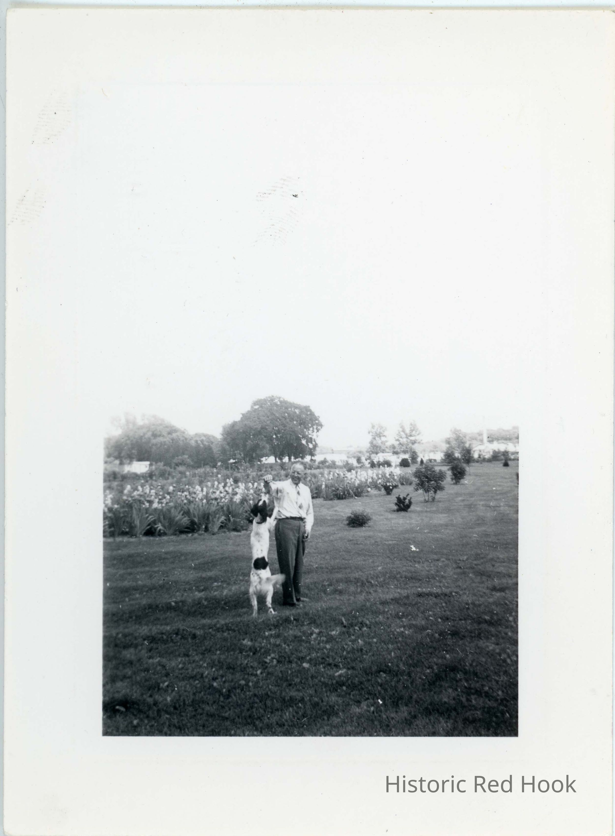 Gordon Voorhis of Voorhis-Tiebout Co. with dog; Voorhis-