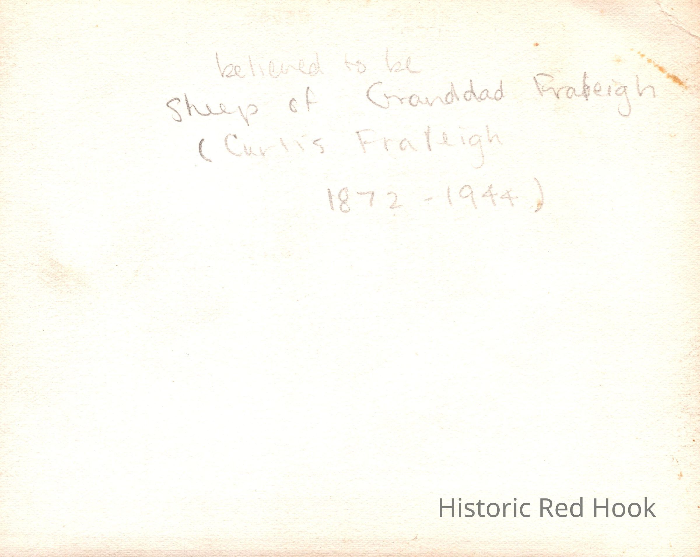 An outdoor photograph showing what is believed to be sheep at the Fraleigh farm.Photograph Details