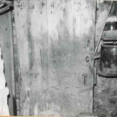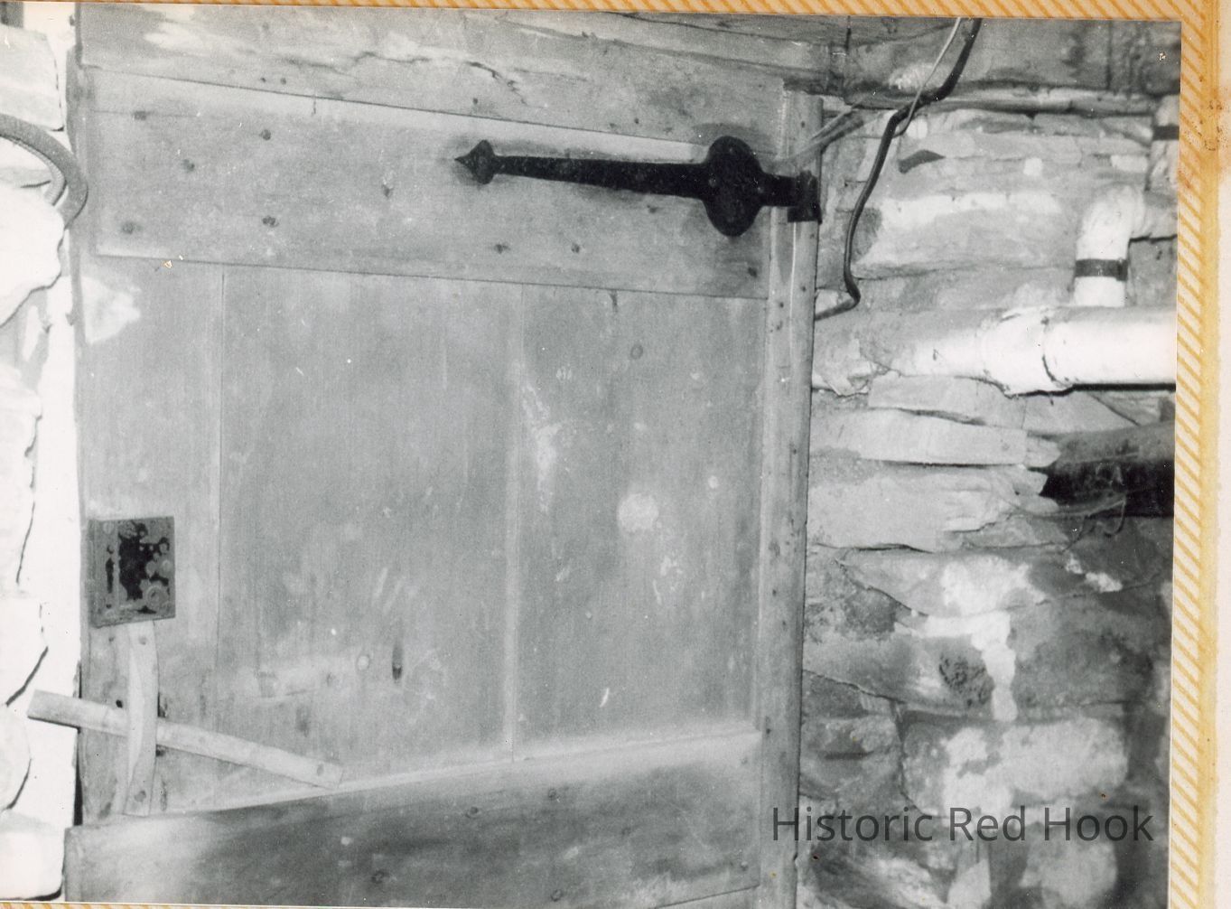 Cellar latch-string door - strap hinge - outside door of the original first partition - Heermance farmhouse - two views.Photograph Details