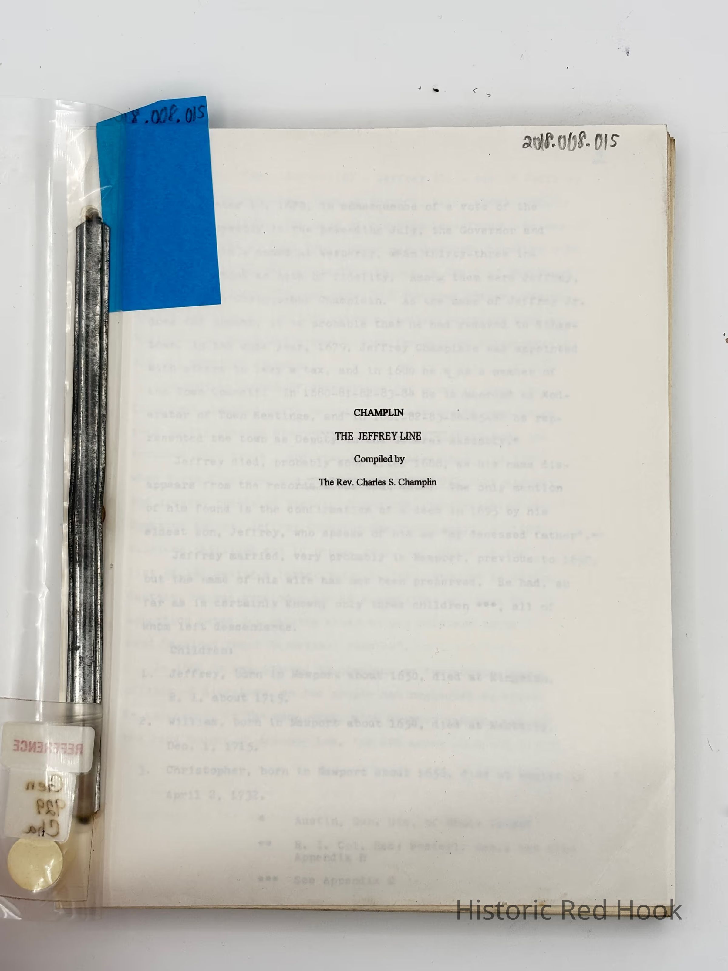 Rev. Charles S. Champlin was located in Red Hook, New York.Collection