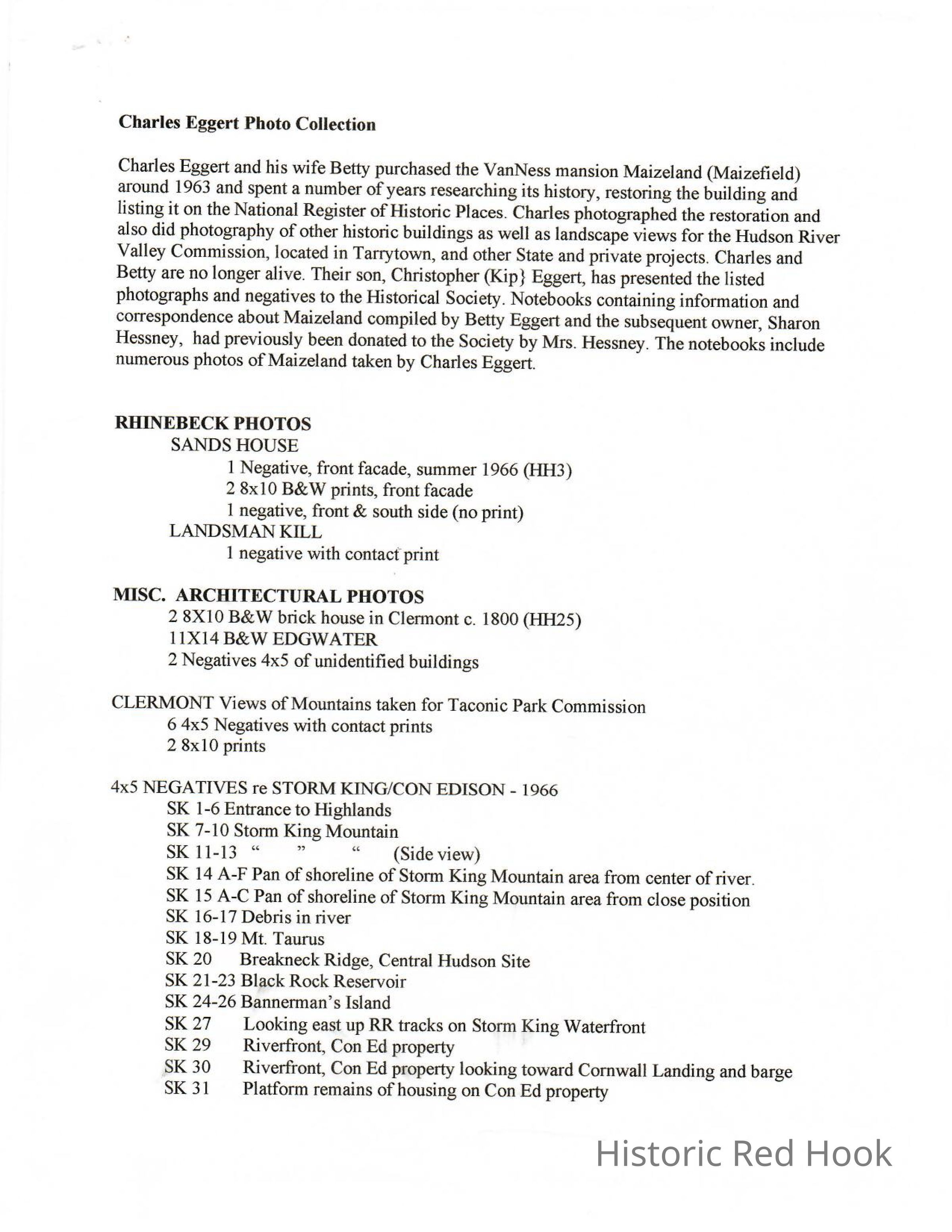 Collection of negative and black & white prints of historic houses and Hudson Valley scenes taken by Charles Eggert in the 1950s and 1960s.Collection