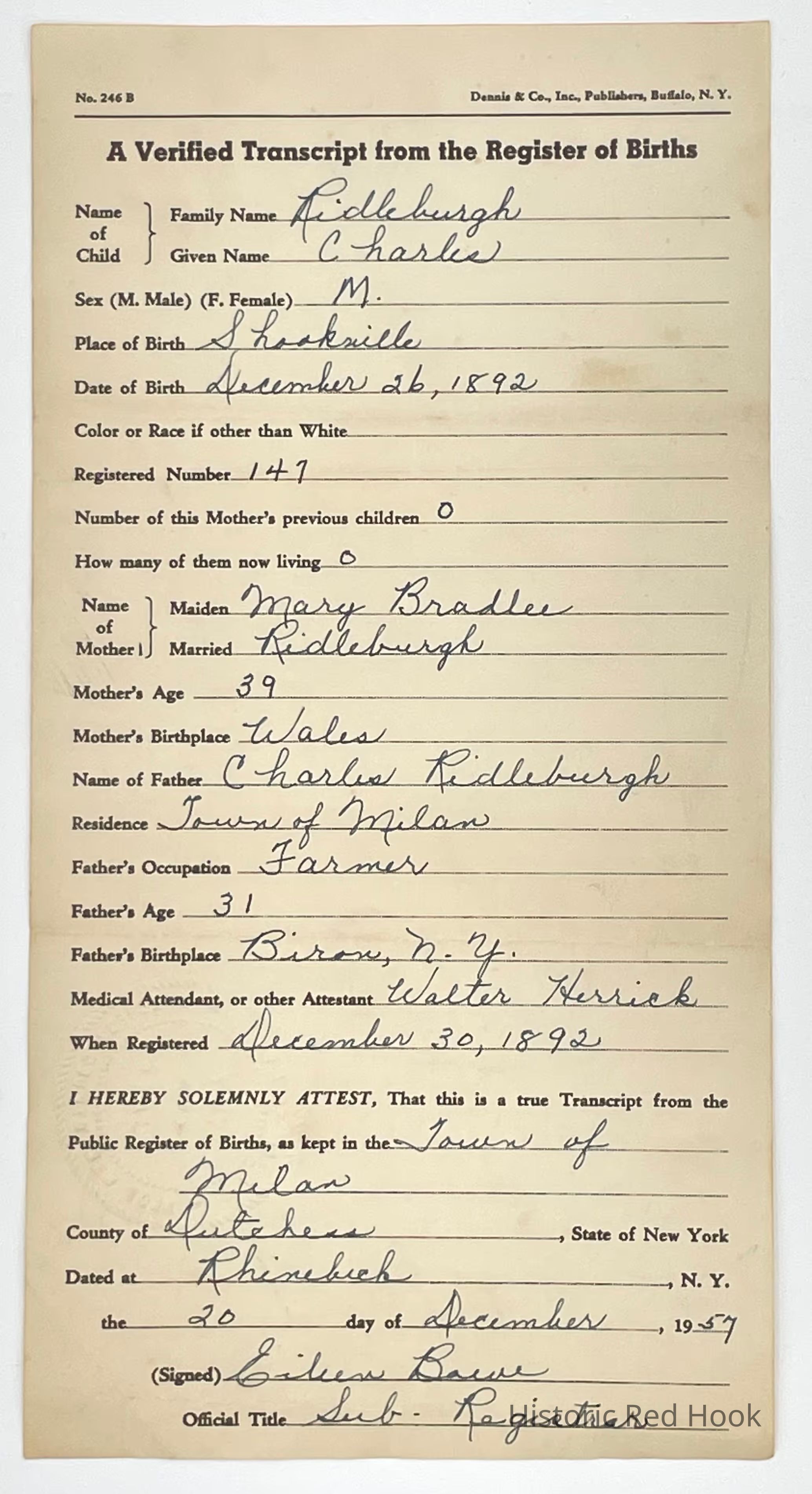 Charles Riddleburgh Jr. Birth RegisterCollection
