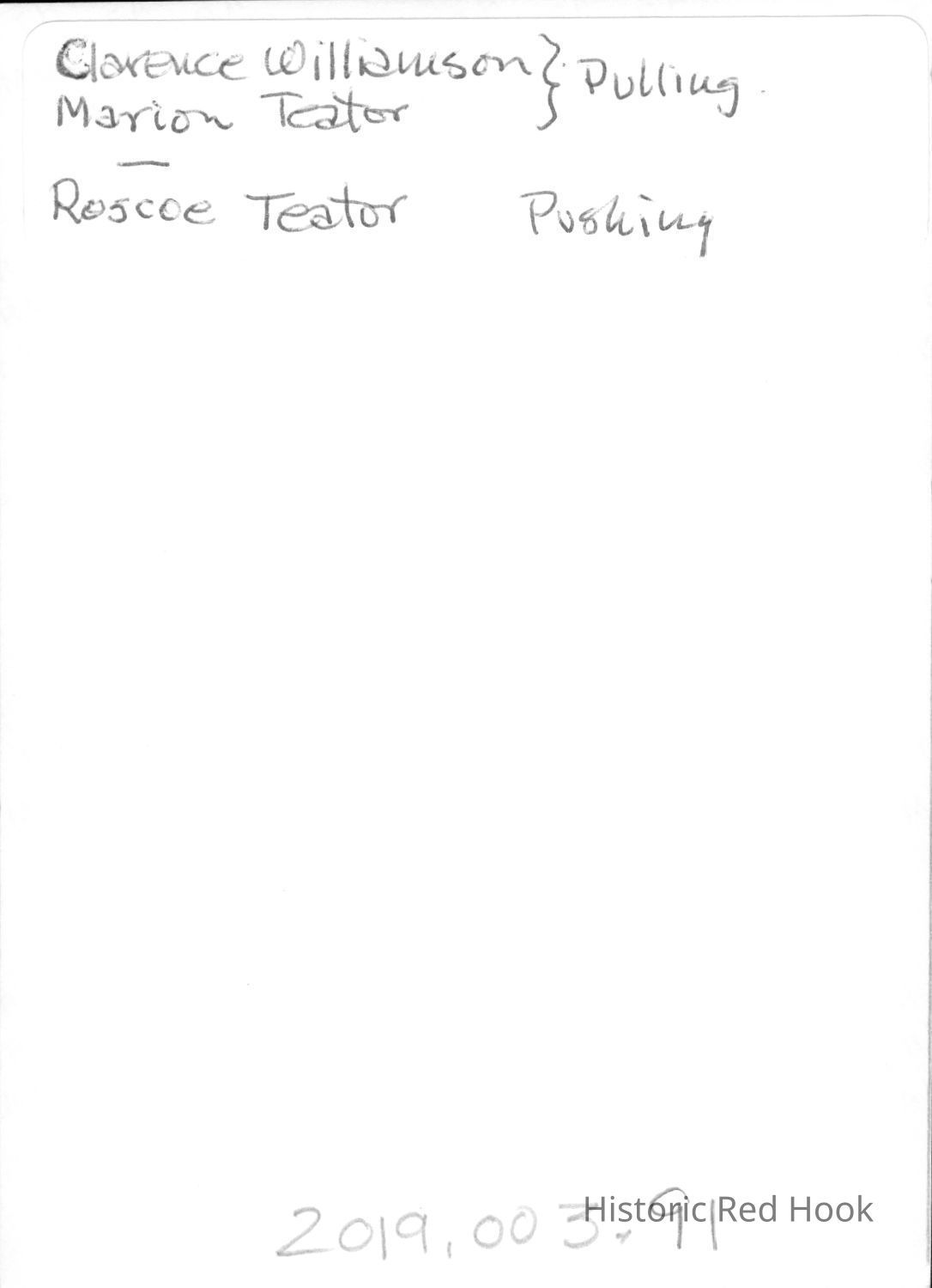 Clarence Williamson, Marion Teator, Roscoe Teator & ?Entry/Object ID