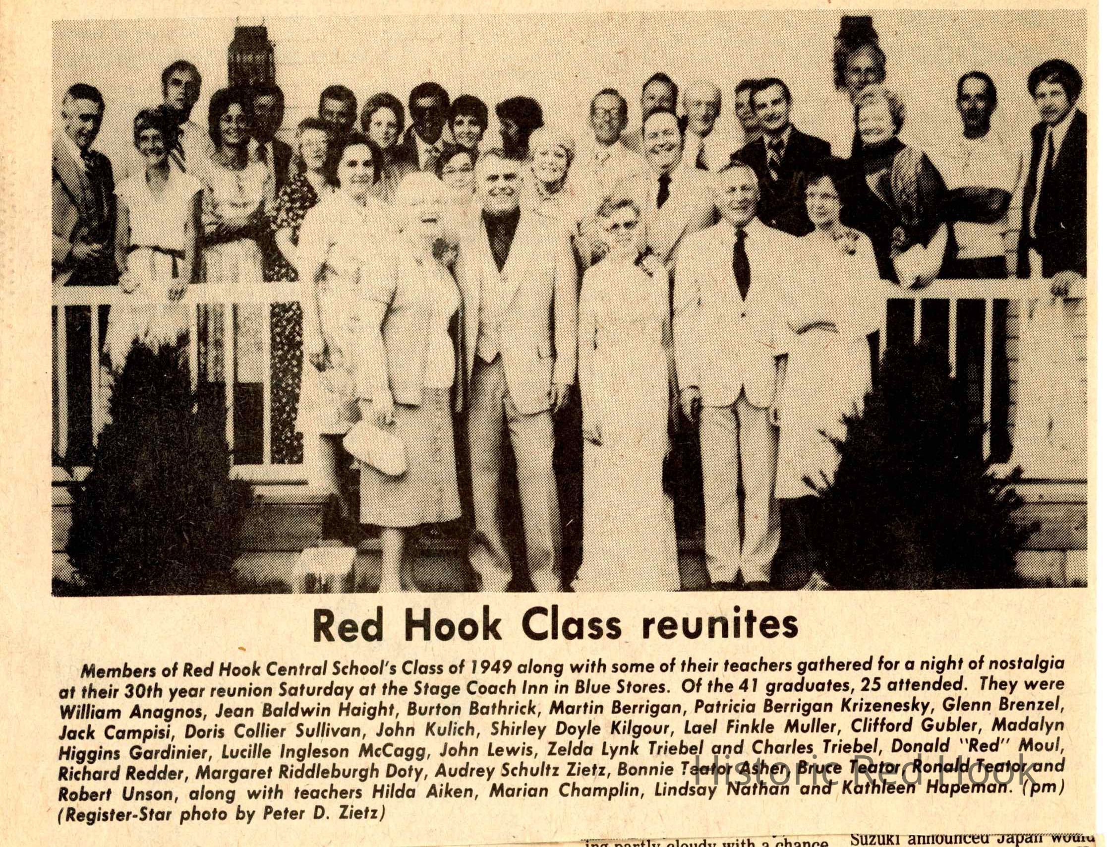 Article and picture of Red Hook High School Class of 1949, 30th year reunionCollection