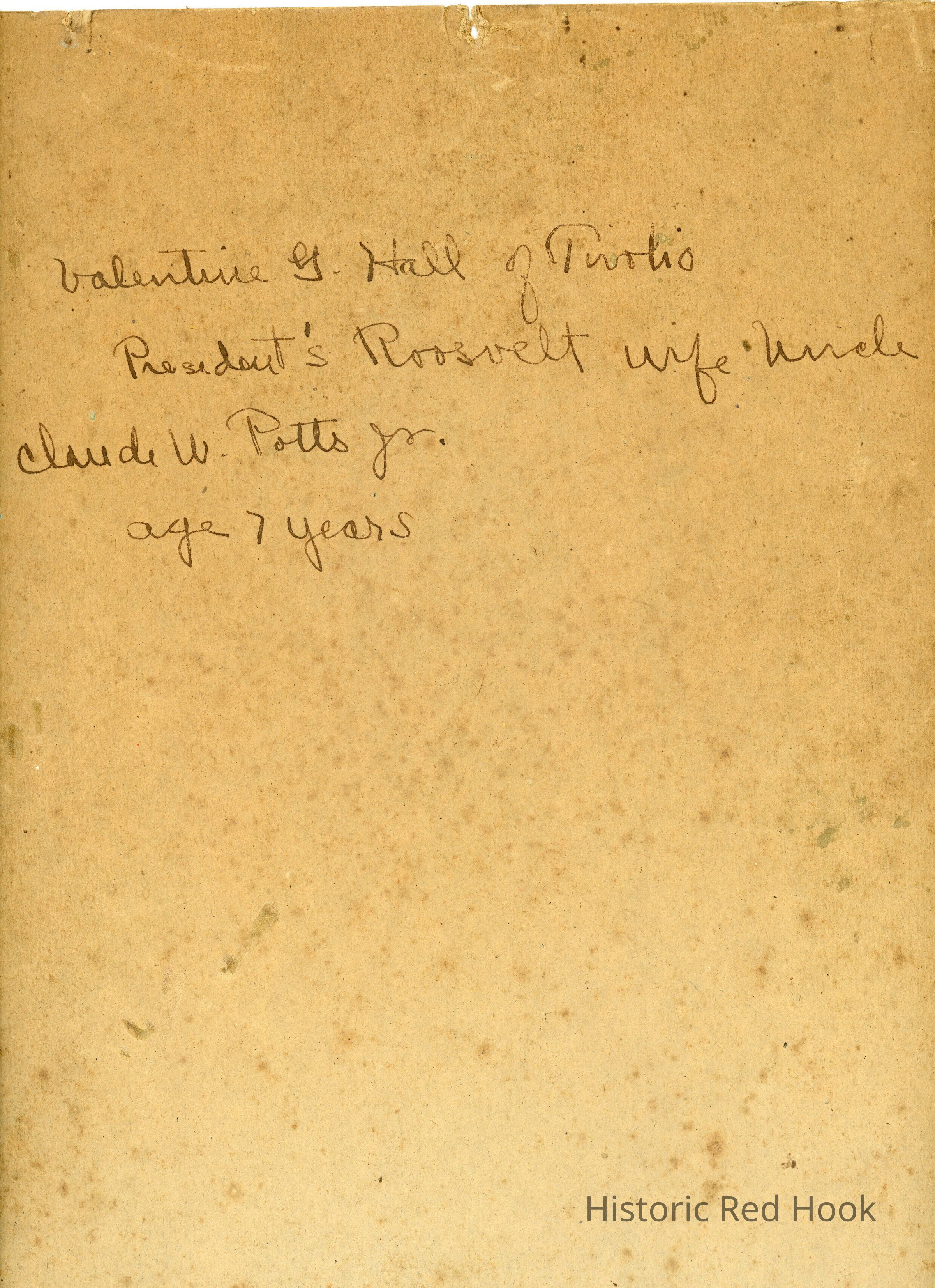 Written on back: Valentine G. Hall of Tivoli