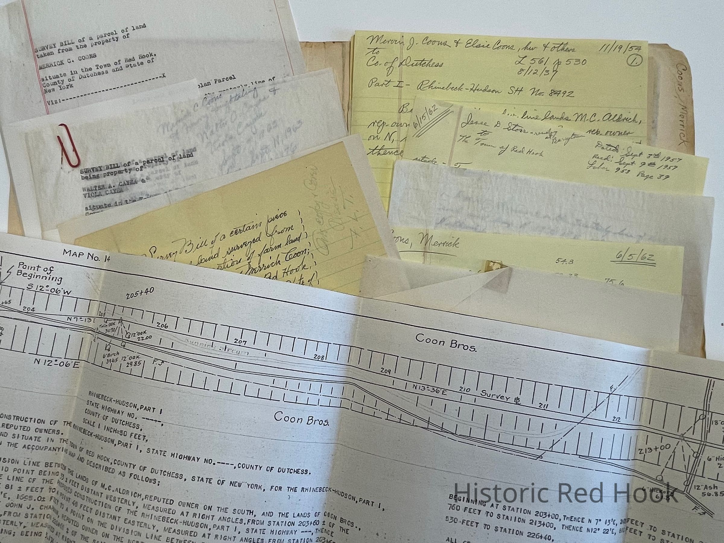 Field Notes for Merrick C. Coons, Barrytown, Parcel on 9G 1954