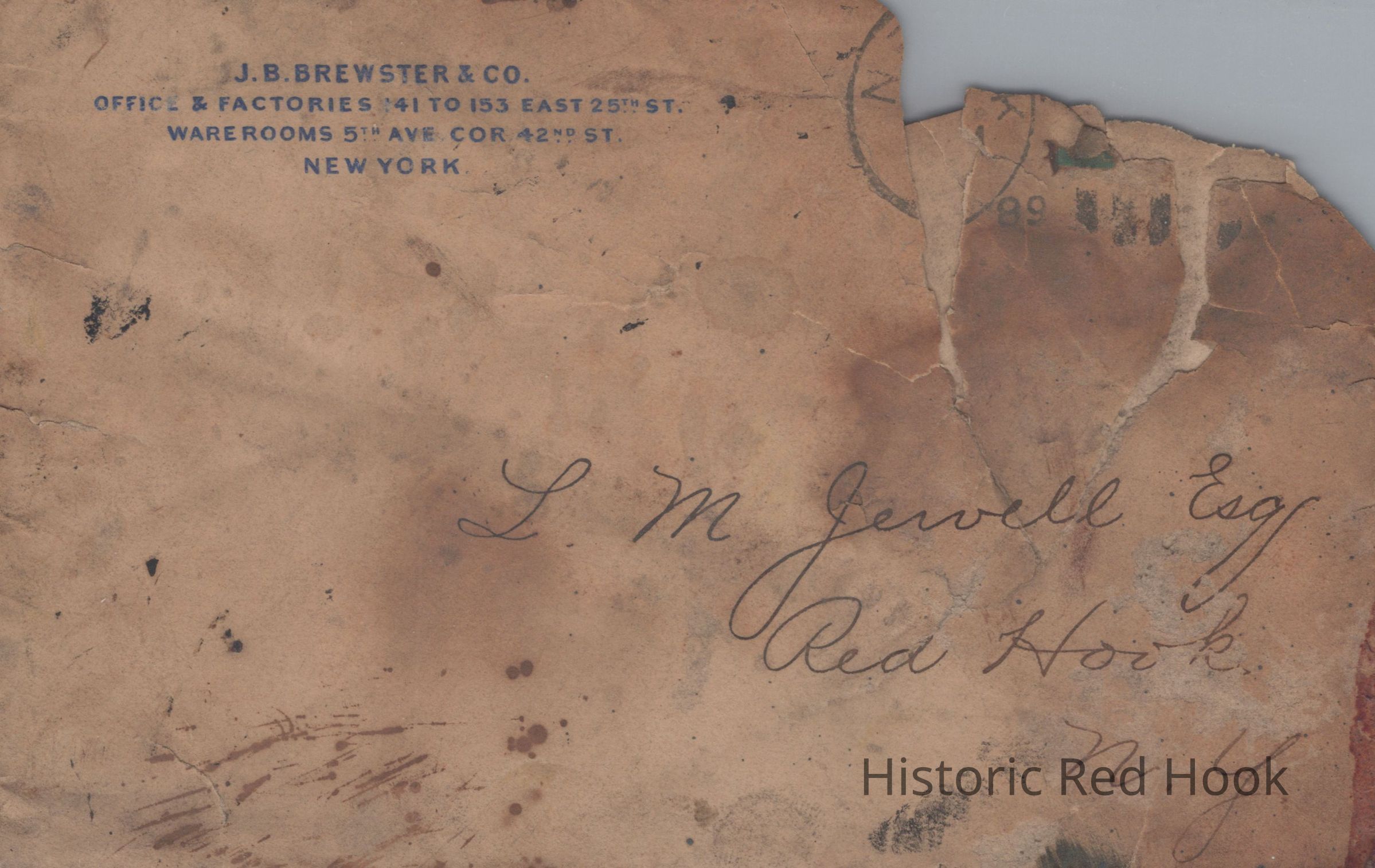 Note on original folder says it was found "in the front wall' of Elmendorph - attic?Collection