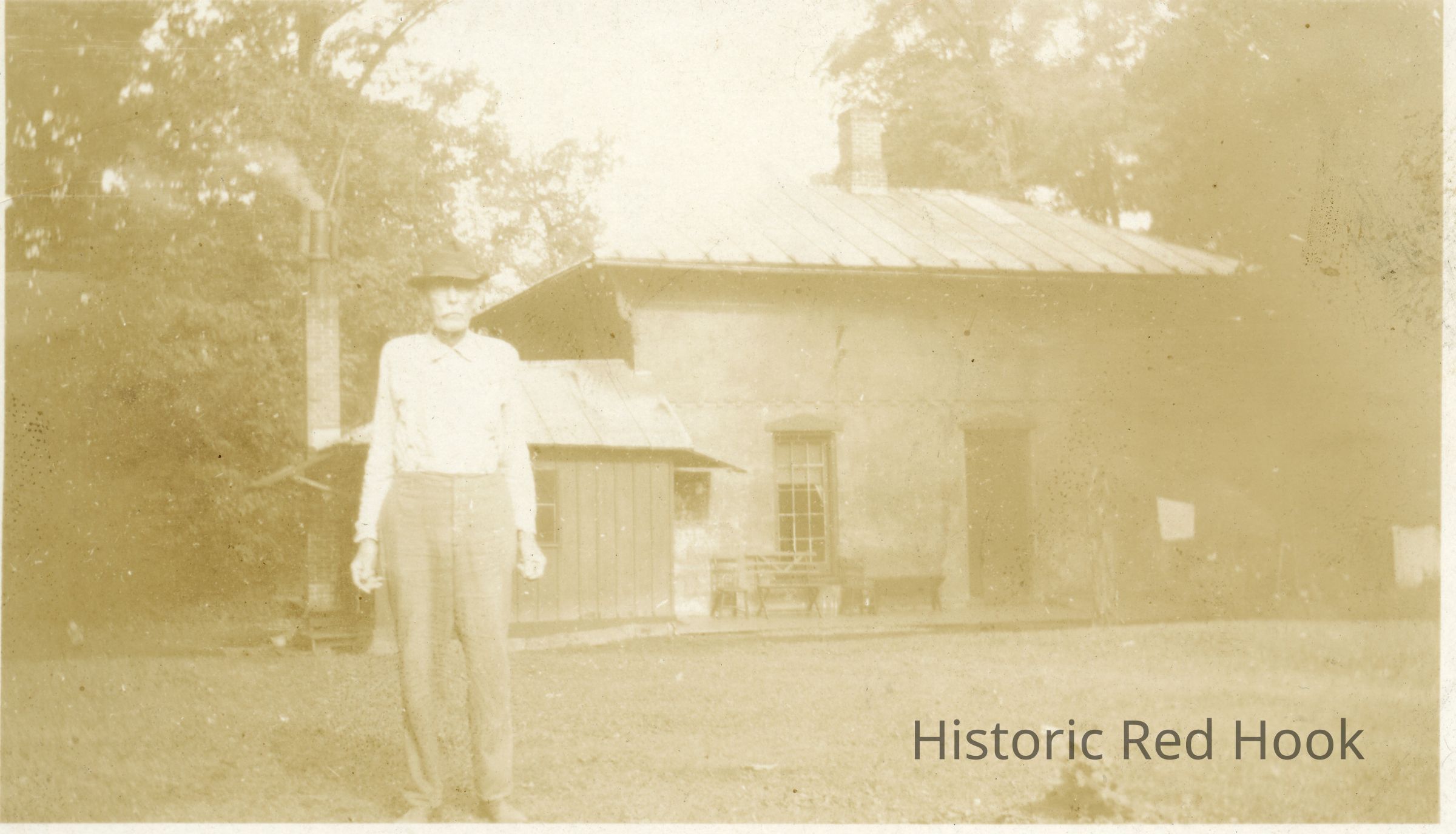 Cottage on Clermont. Man standing in front of building. (Only the foundation exists now.)Photograph Details
