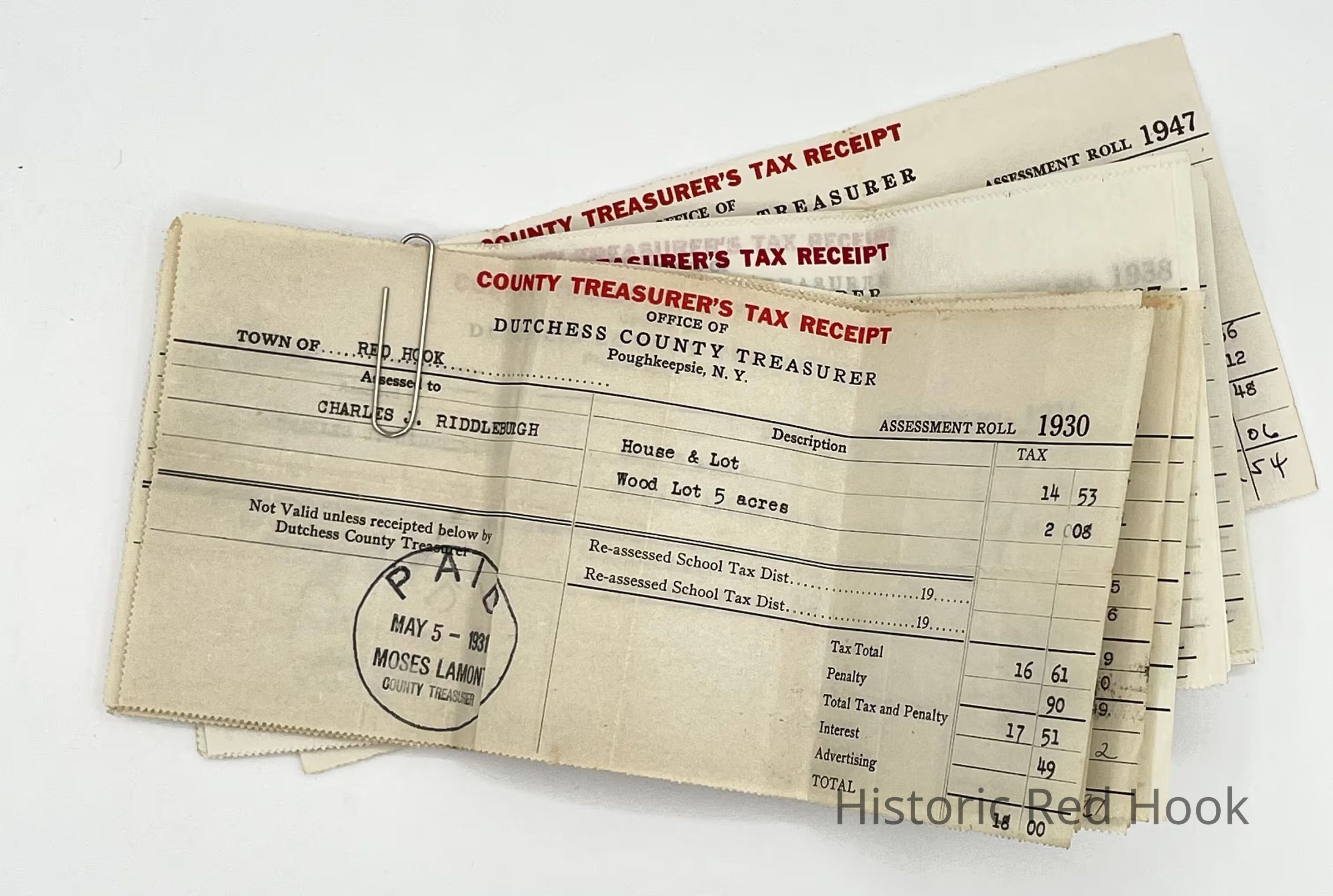 County Property Tax Receipts for Charles Jr. and Elizabeth RiddleburghCollection