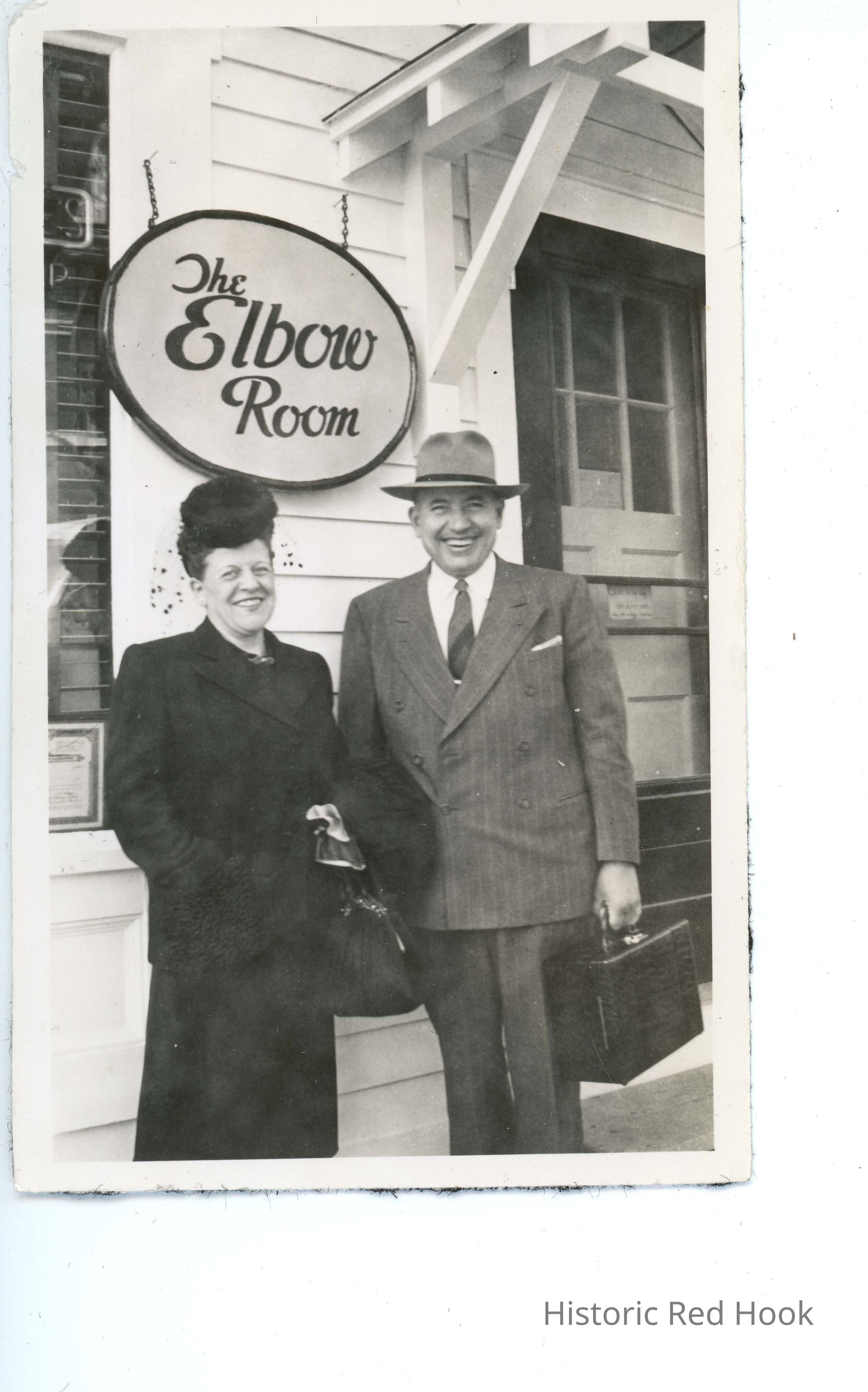 Couple outside Red Hook Hotel Elbow Room, 1949Entry/Object ID