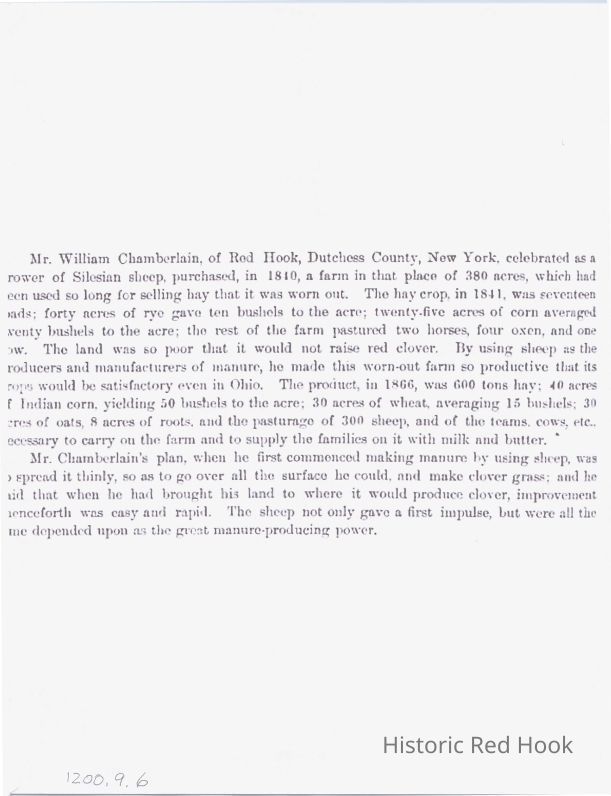 A copy of a brief synopsis (author unknown) of the crops, animals and industry of the Chamberlain farm during the period from 1840 through 1866,Collection