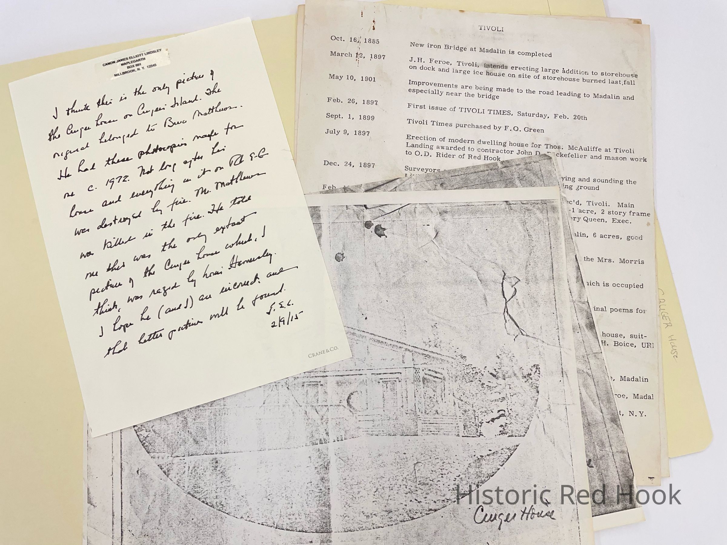 Folder that contains info about Cruger House.