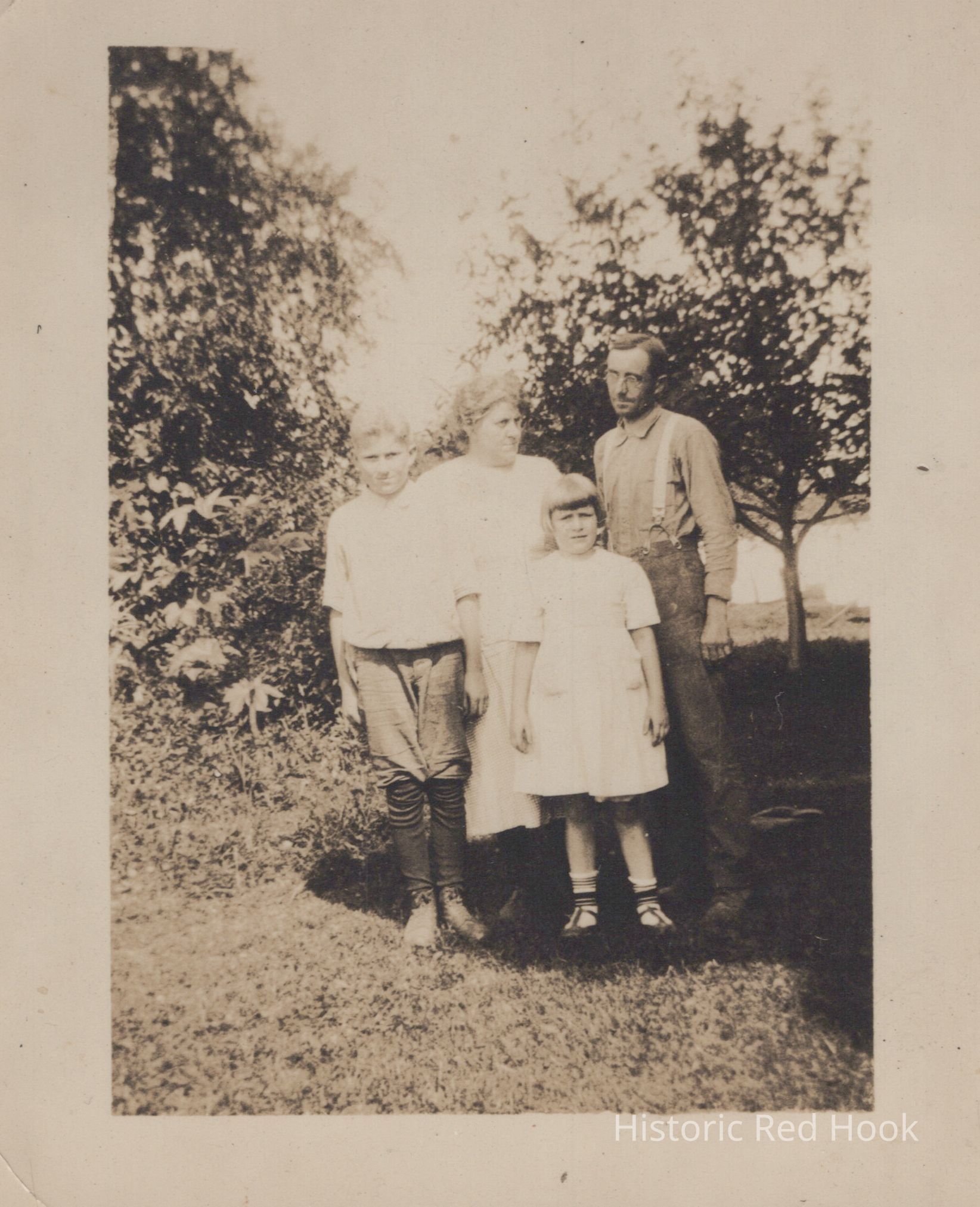 Elmore, Fanny, Curtis (L-R) and Ruth Fraleigh standing outdoors.Photograph Details