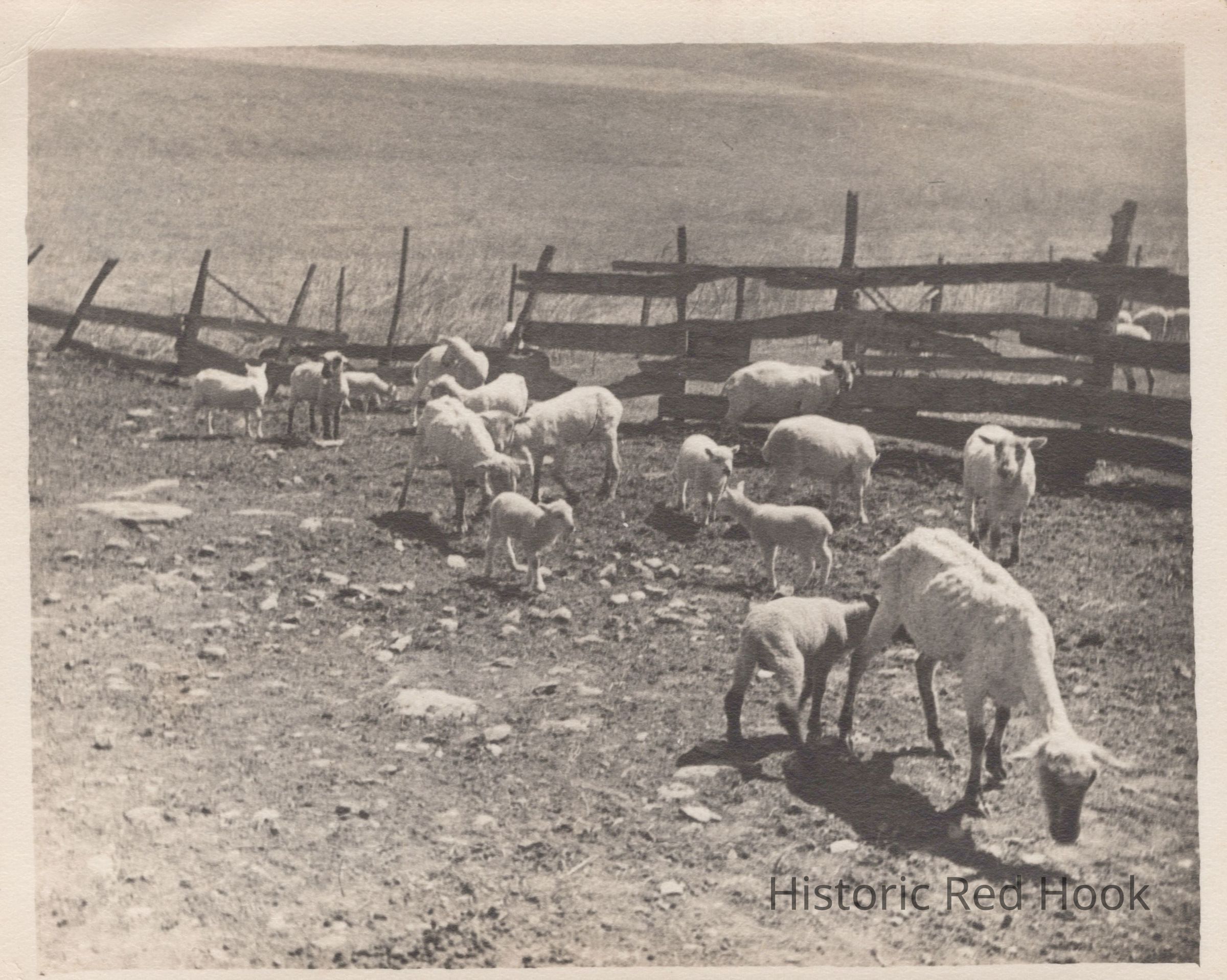 An outdoor photograph showing what is believed to be sheep at the Fraleigh farm.Photograph Details
