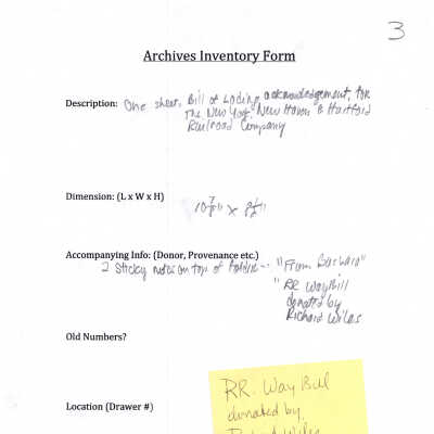Bill of Lading - New York, New Haven and Hartford Railroad CompanyEntry/Object ID