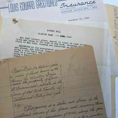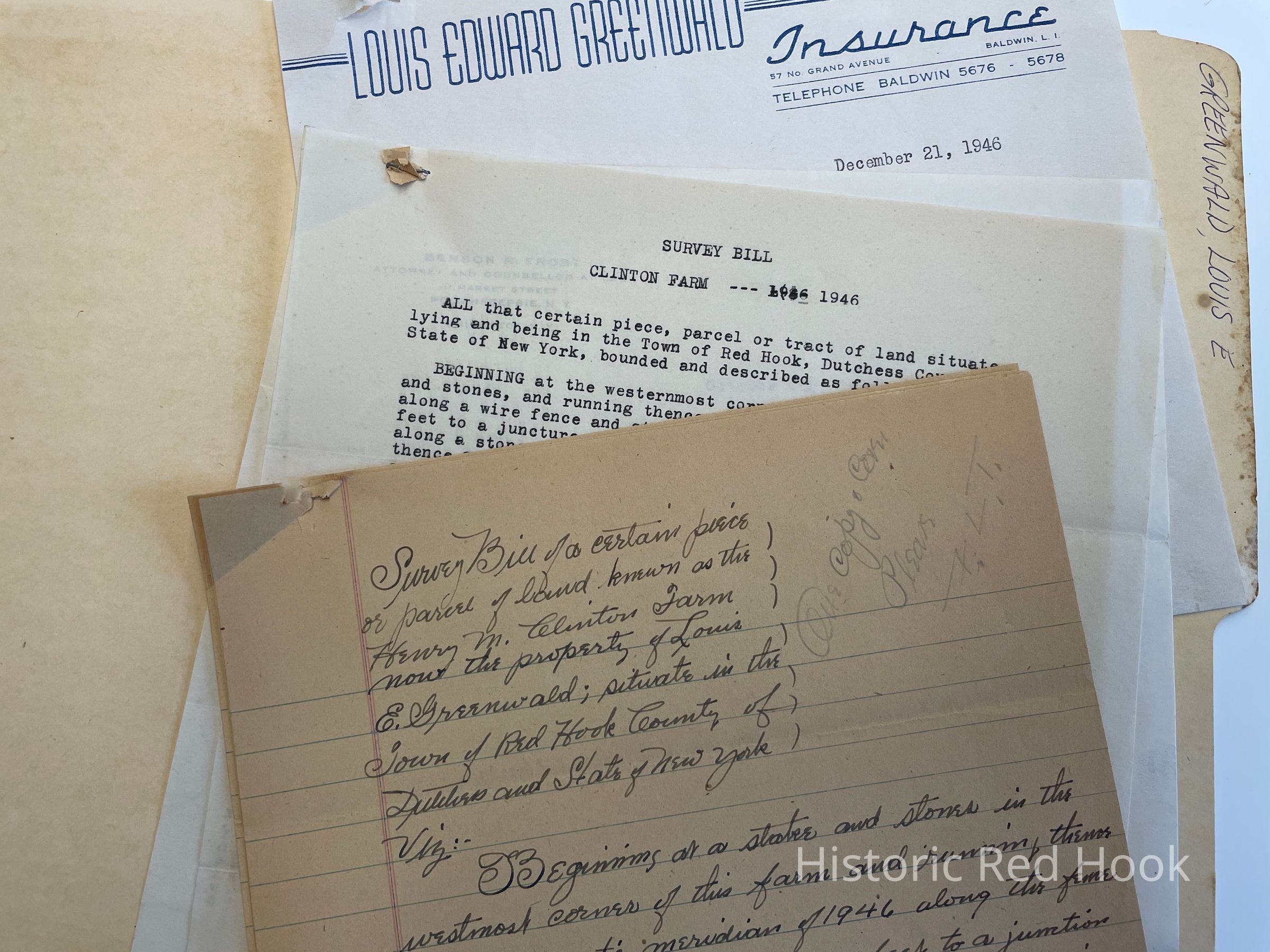 Survey: For Louis E. Greenwald Nov 1946 108.36 acres. Excepting a parcel of 0.41 acres conveyed to Thomas A. Tripp