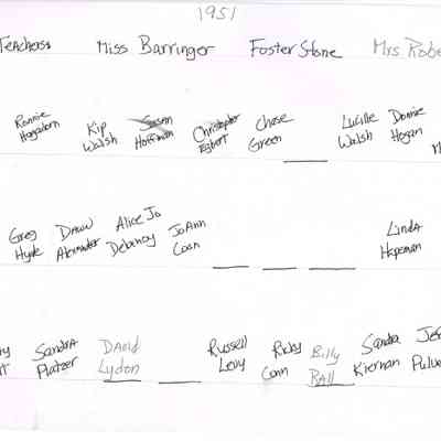 Teachers: Miss Barringer, Foster Stone, Mrs. Robert Schultz