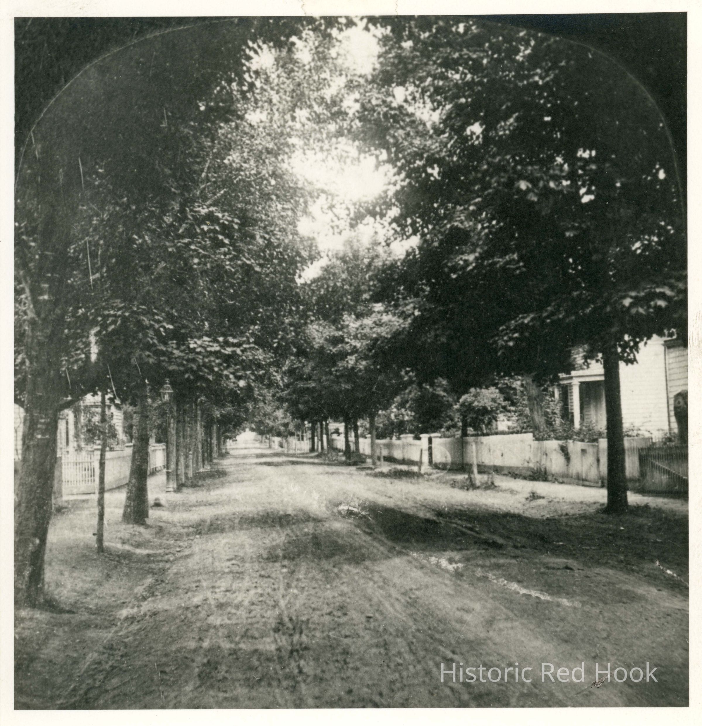 Red Hook Village, East Street, 1878. View of tree-lined street with picket fences. J.W. Aldrich Collection [confirm this is East Market St]