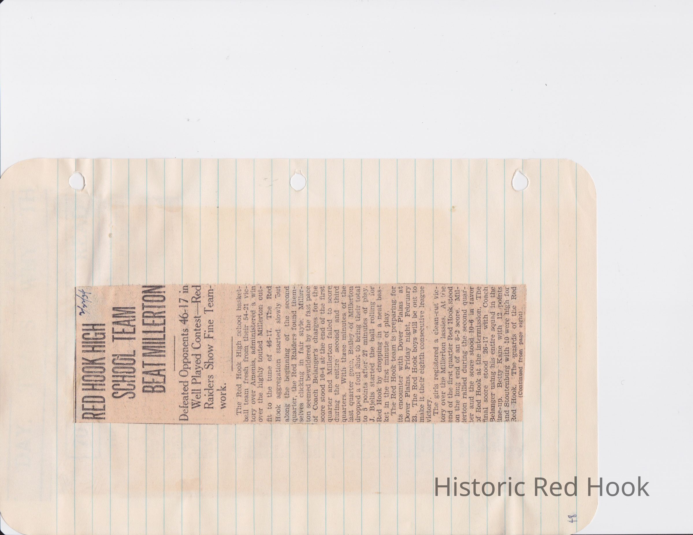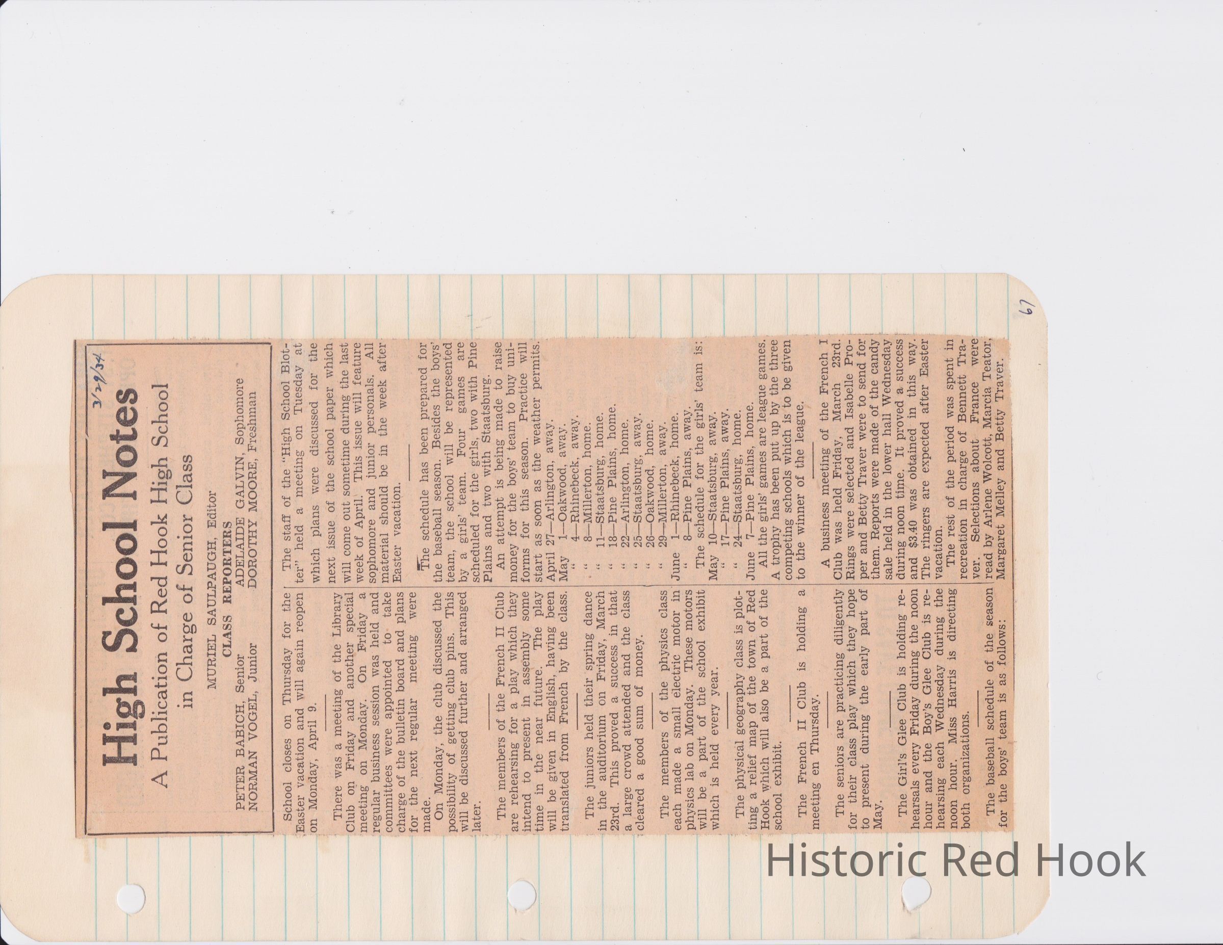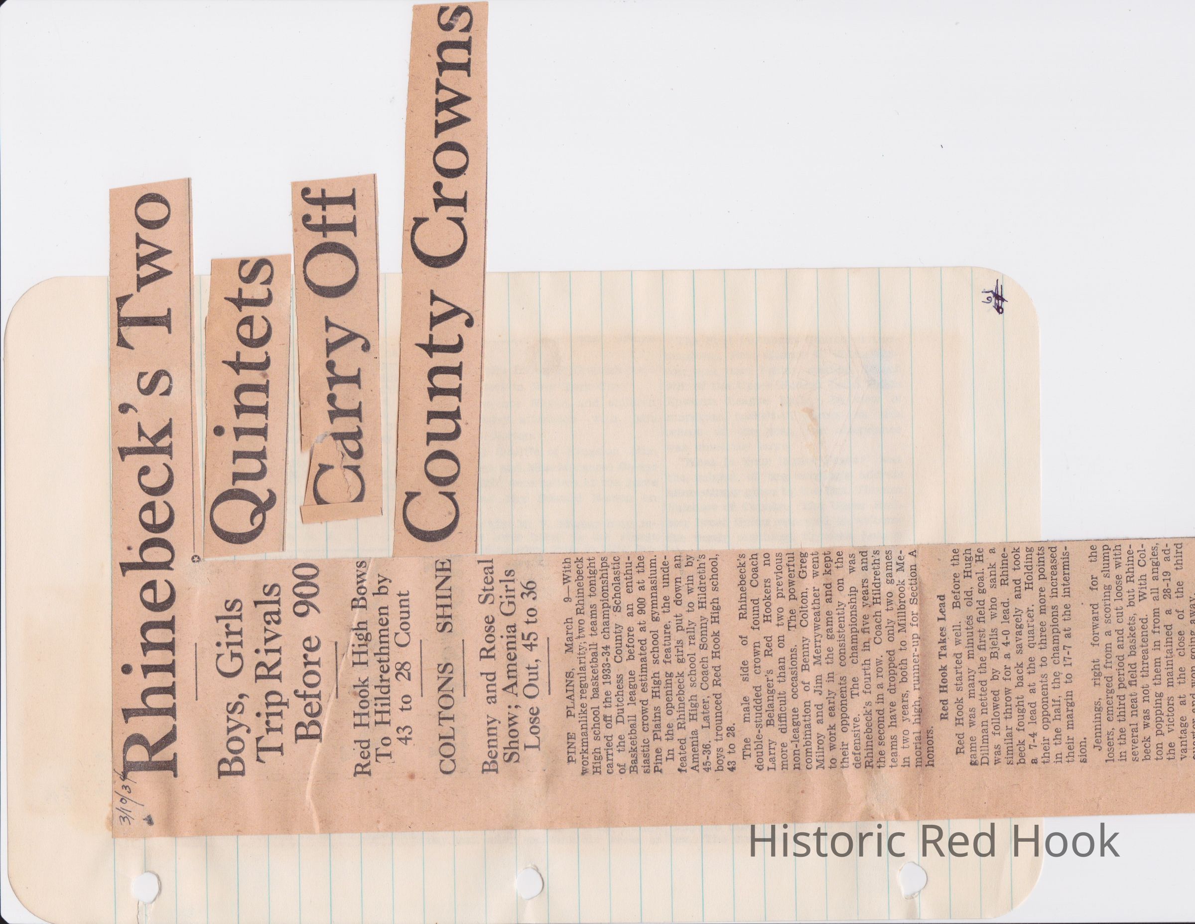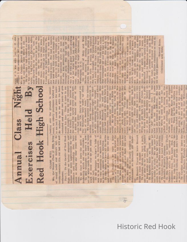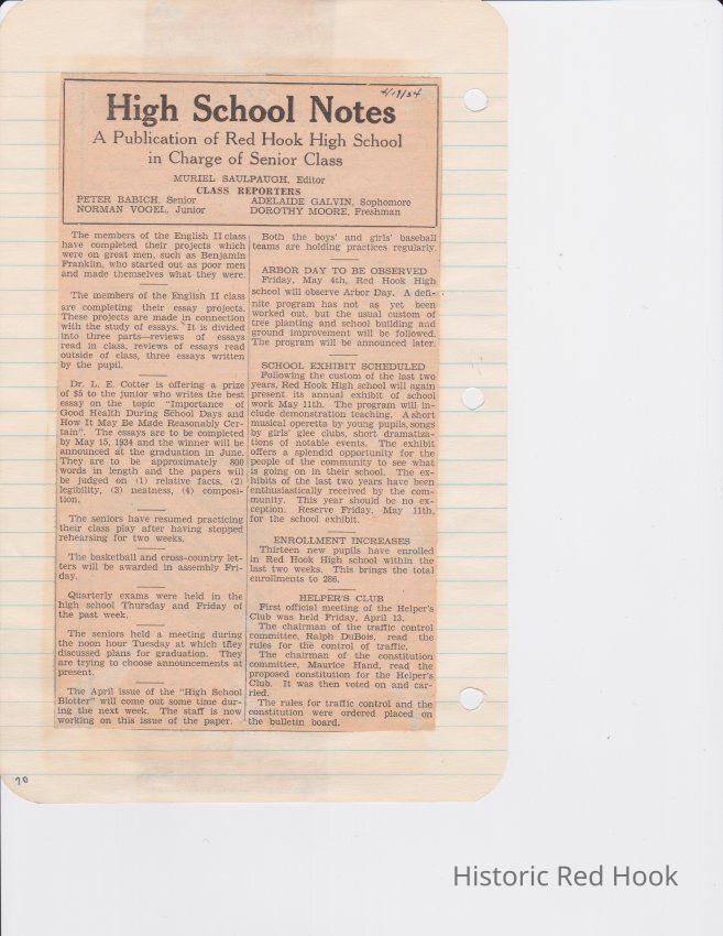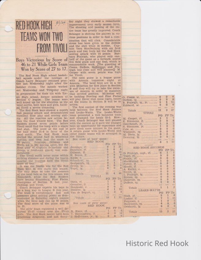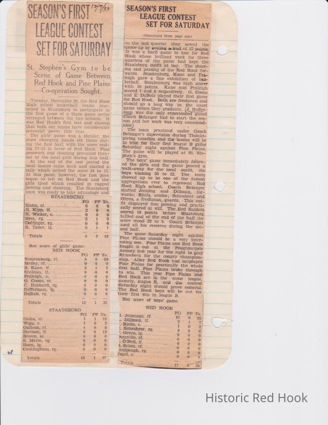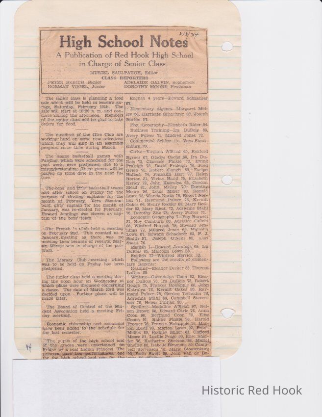 Scrapbook put together by Norman Vogel. It contains newspaper clippings about school news and sports from Red Hook High School 1933-1934. It was given to Patsy Vogel by Norman's widow, Margaret Vogel.
